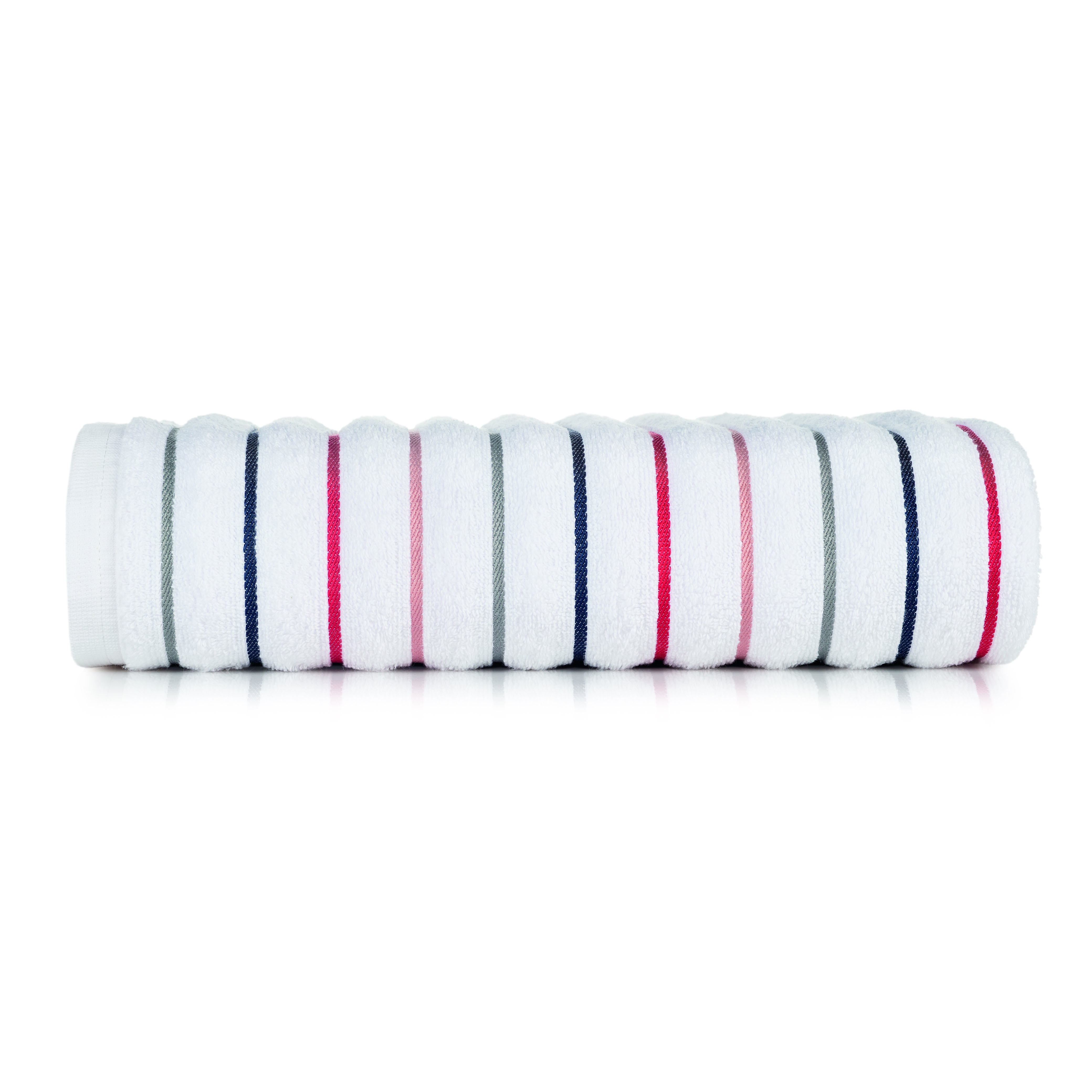 Conteúdo da Embalagem: 1 Toalha banhão Accua branco com listras coloridas