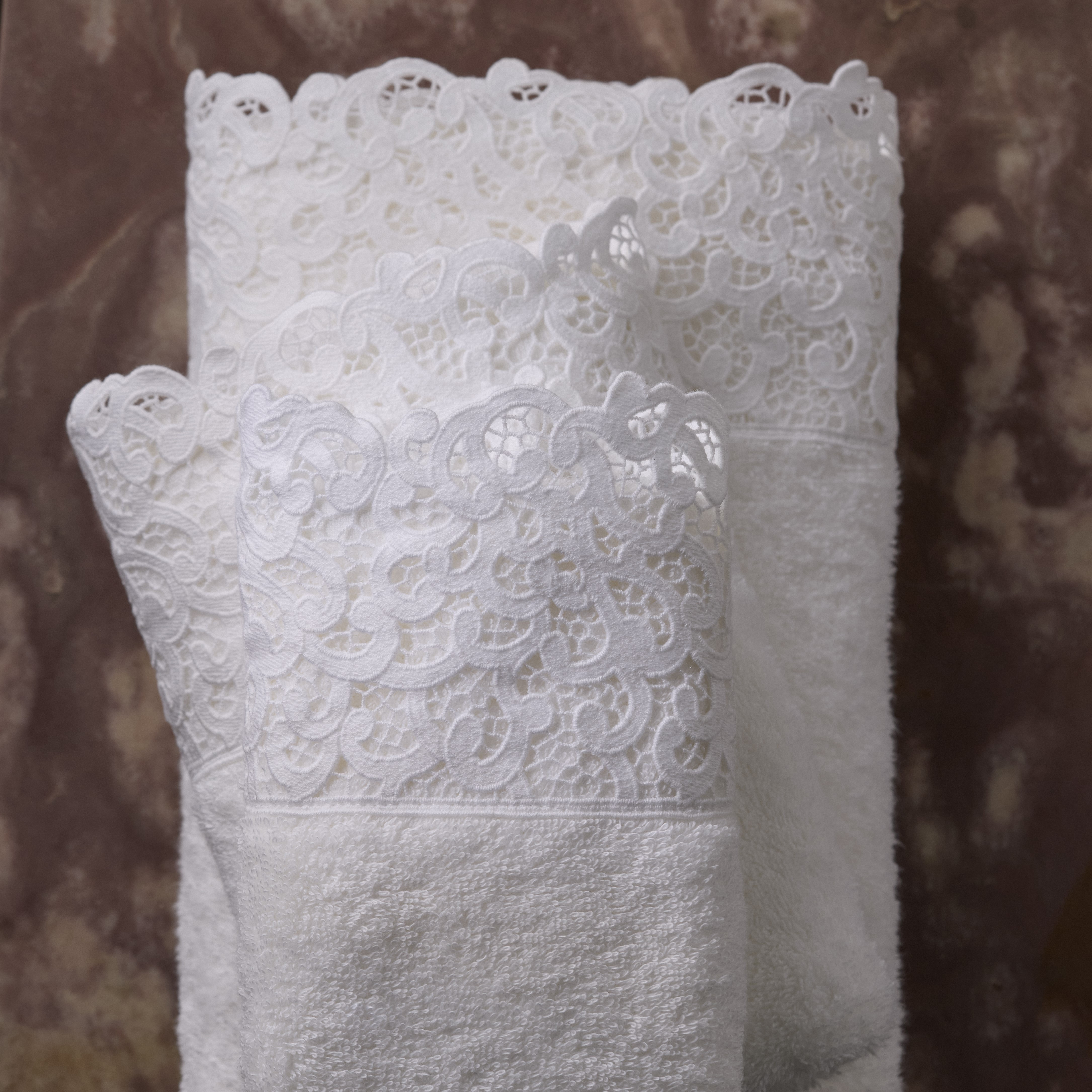 Conteúdo da Embalagem: 1 Toalha de lavabo Capri com renda branca