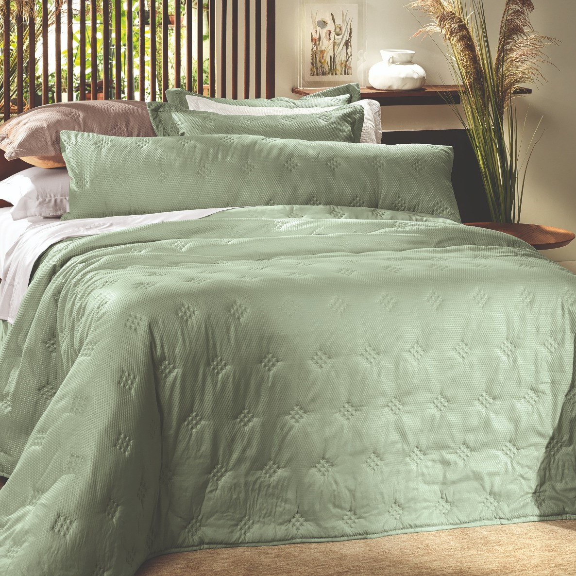 COLCHA CASAL TOQUE ACETINADO ANARRUGA VERDE SAUGE