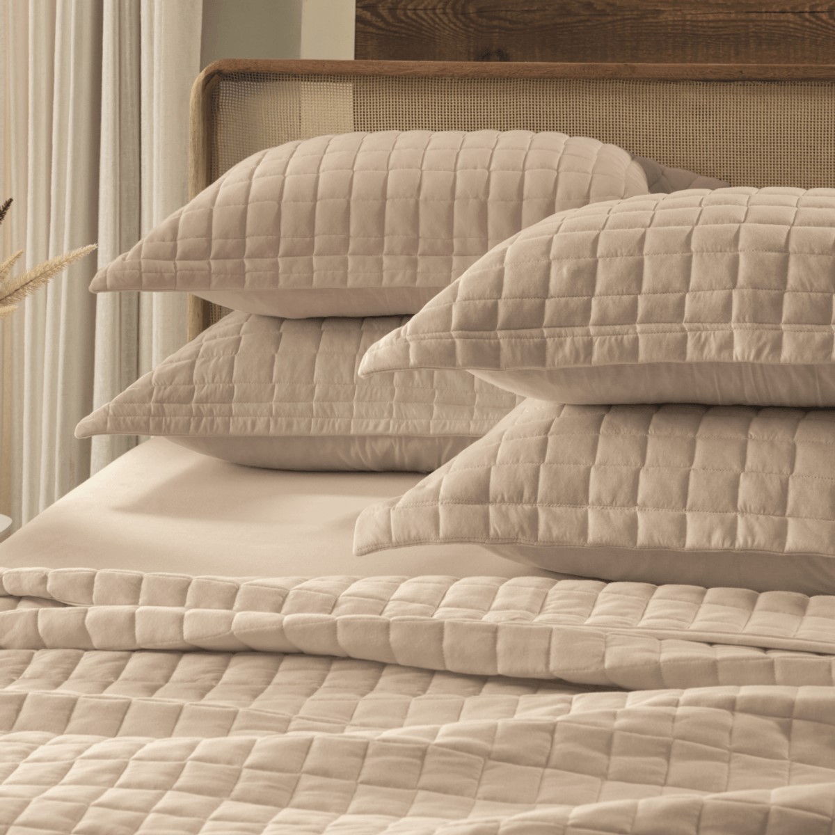 Aconchego e elegância em cada detalhe. Confeccionada em malha fio penteado, a colcha traz toque macio, caimento leve e visual sofisticado com seu matelassado em quadrados. Ideal para compor um quarto acolhedor e moderno, une conforto e praticidade em uma única peça.