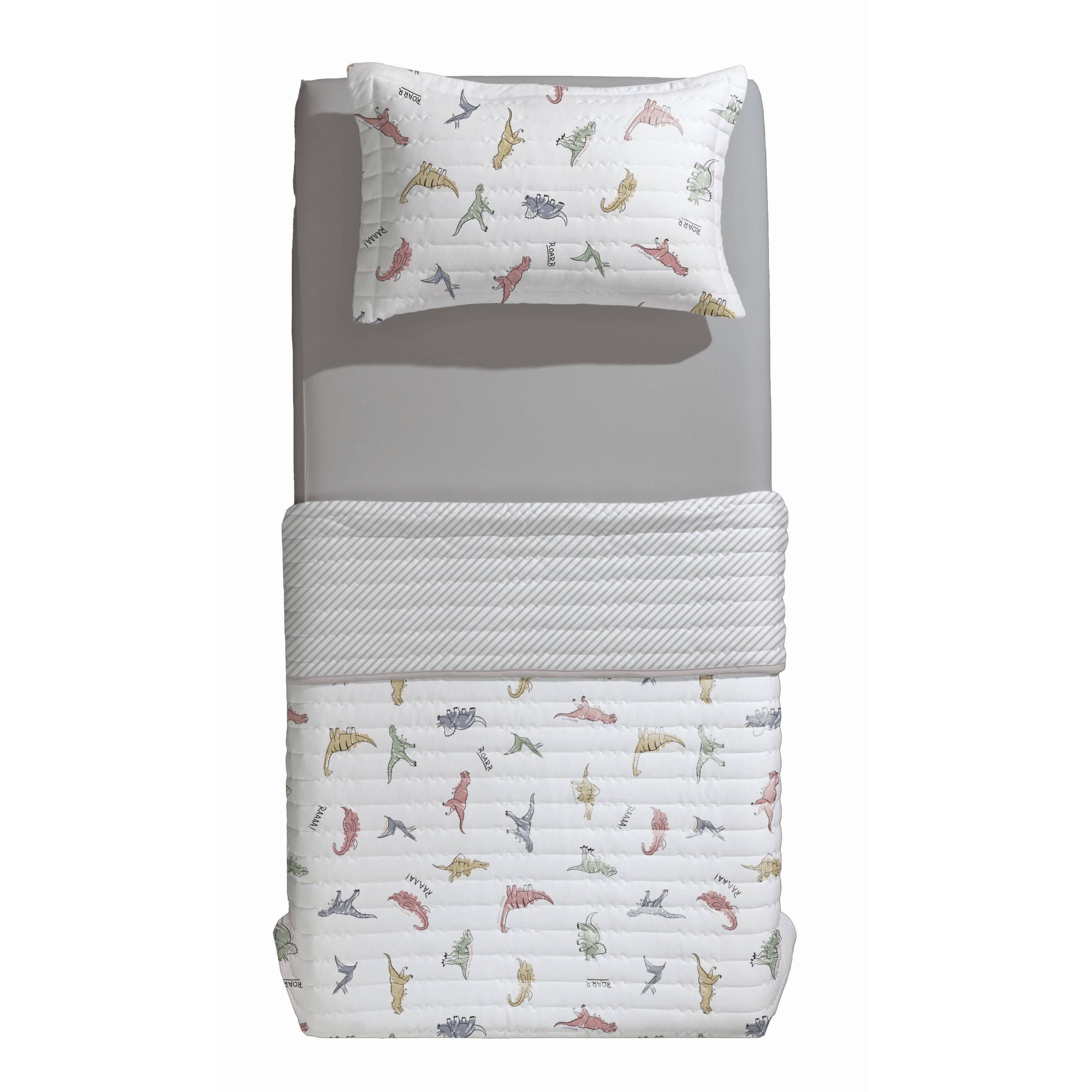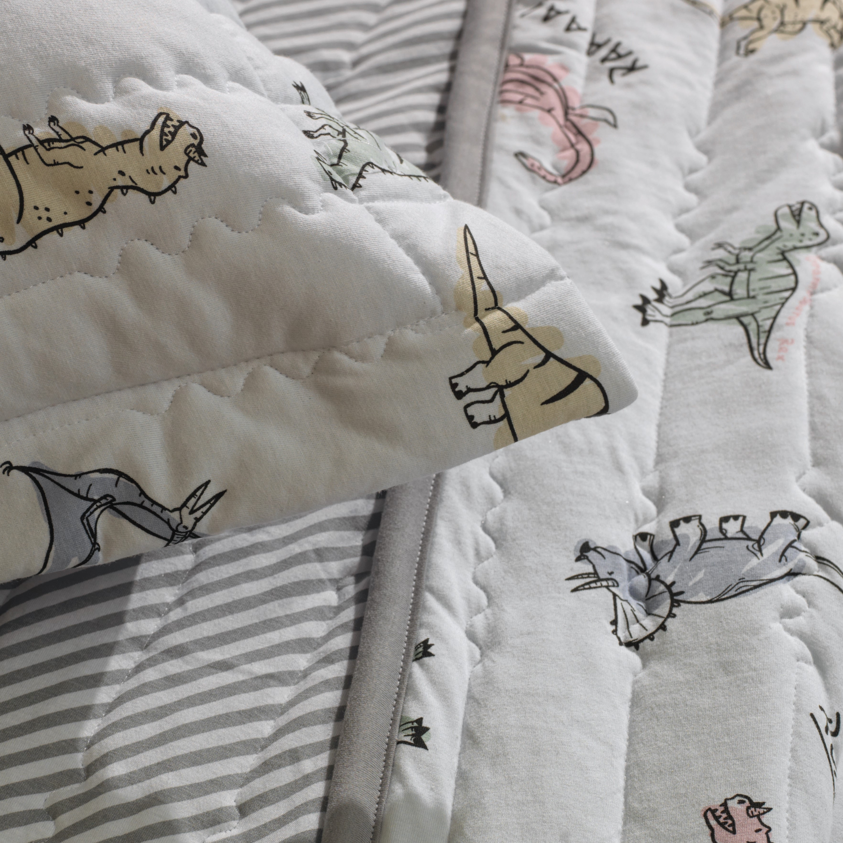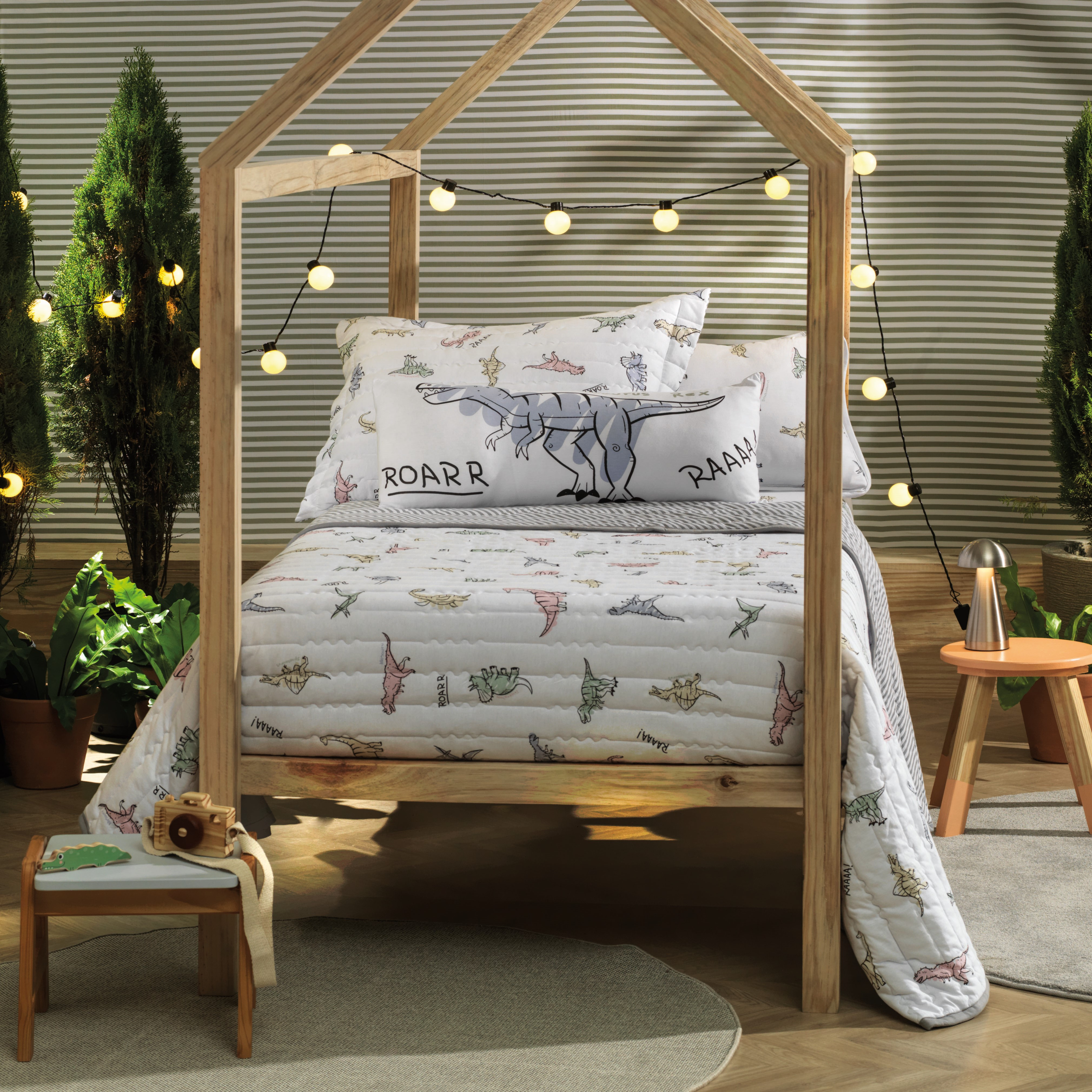 Com a estampa Rugidino, a hora de dormir ganha um toque pré-histórico cheio de diversão! Dinossauros coloridos passeiam pelo tecido macio, trazendo alegria e imaginação para o quarto infantil. Além de superconfortável, esse conjunto transforma o momento de descanso em uma verdadeira aventura jurássica, onde os pequenos podem sonhar e explorar um mundo cheio de descobertas ao lado de seus dinossauros favoritos.