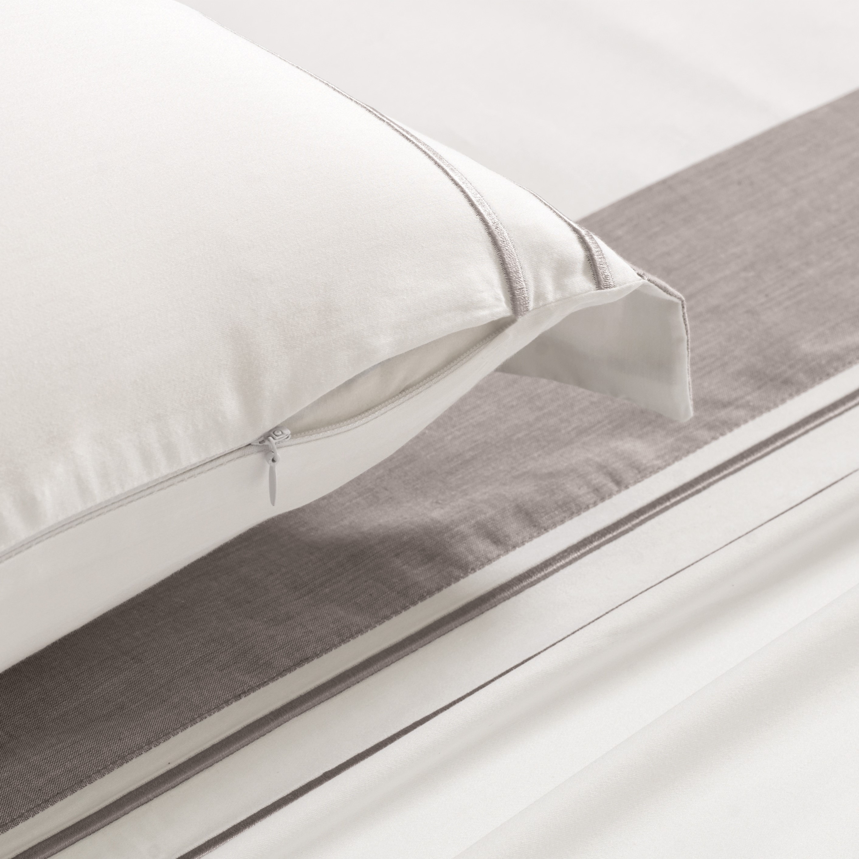 O jogo de lençol Essential em cetim 300 fios combina o toque acetinado do tecido com o design minimalista e o acabamento bordado em tom bege — um clássico atemporal que traz elegância e conforto incomparáveis ao seu quarto.