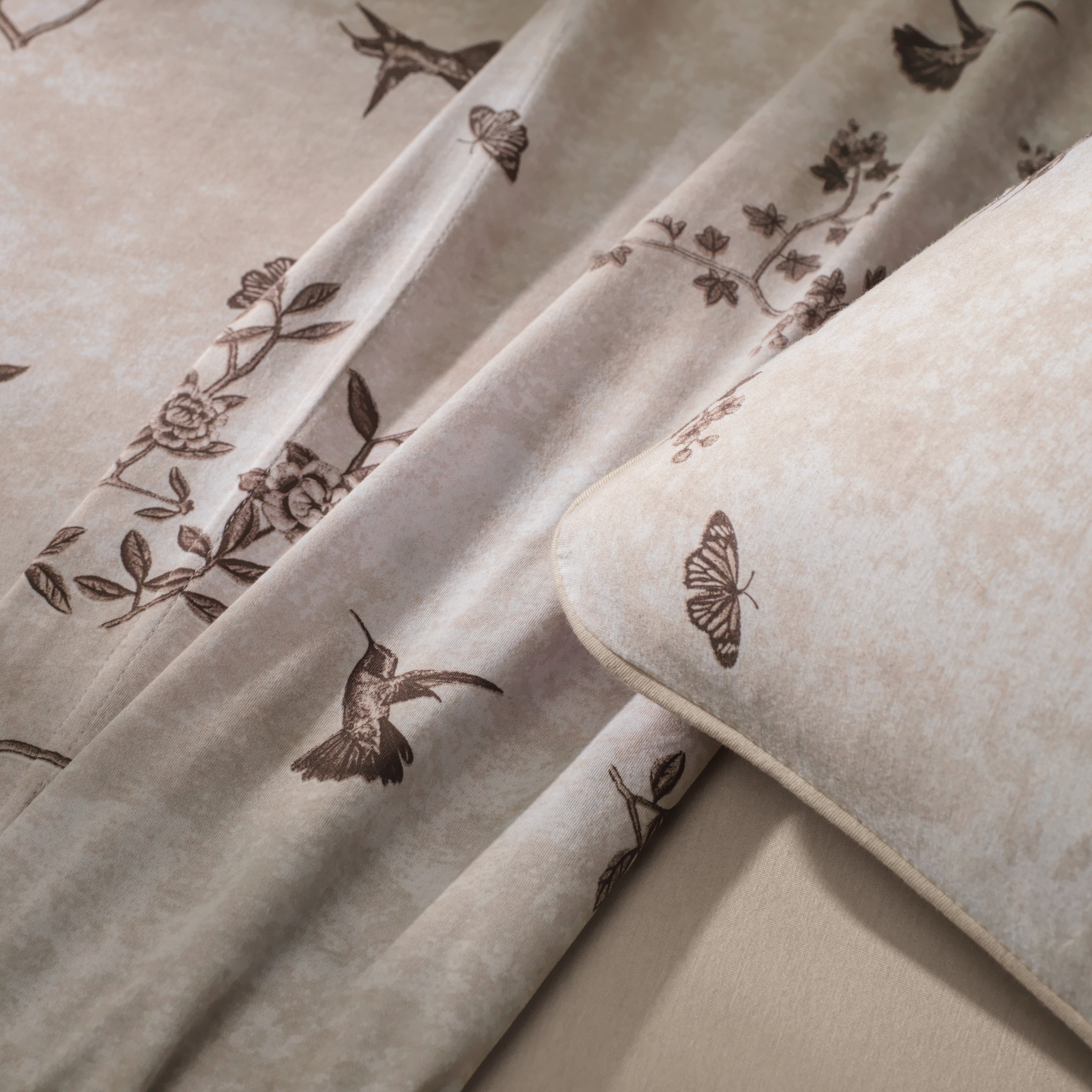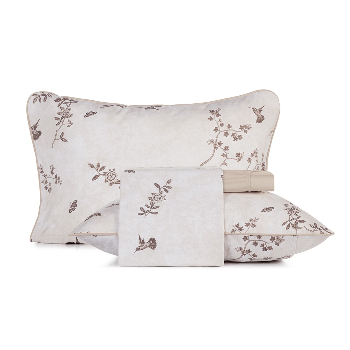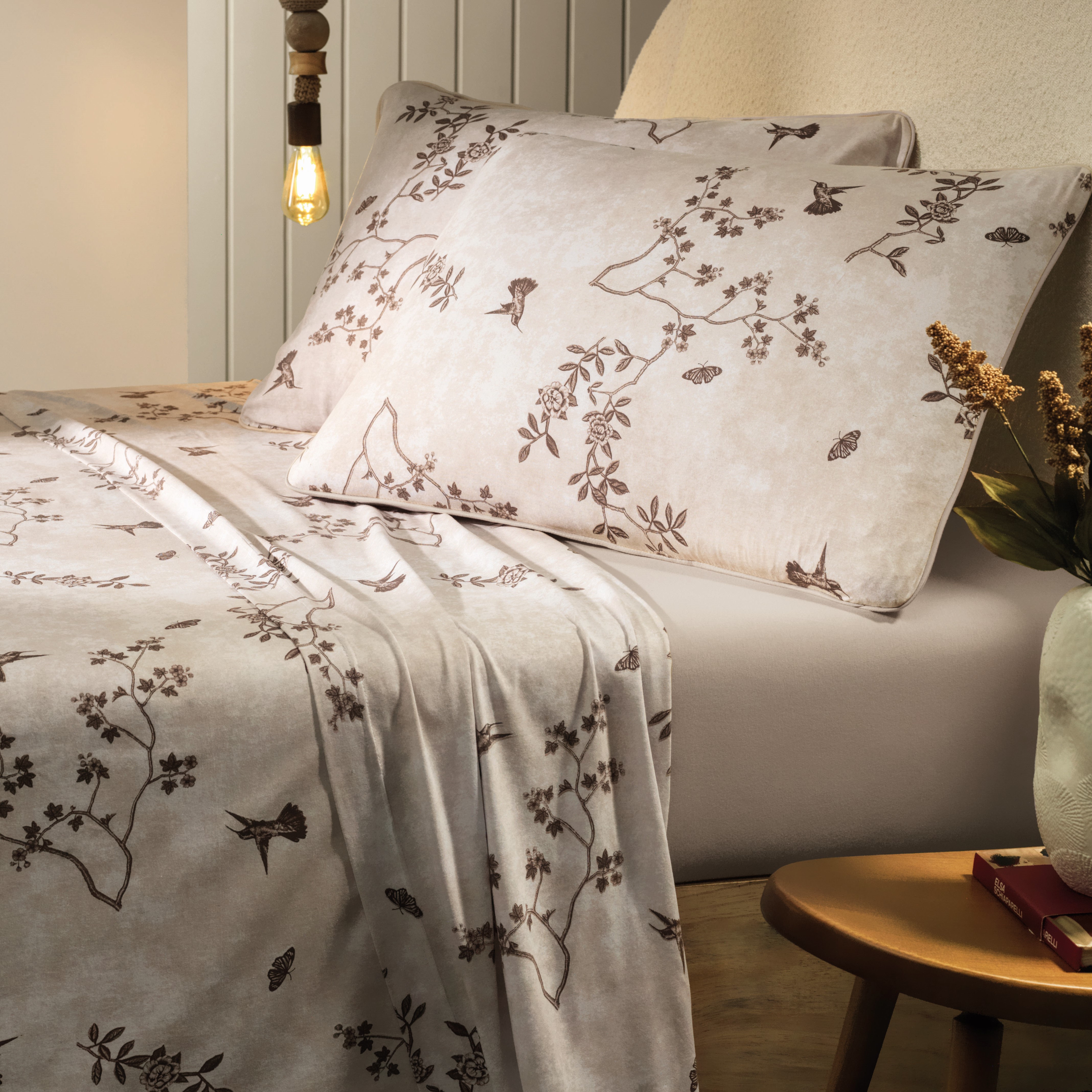 Com estampa de ramos, flores e pássaros em tons sutis, ele traz um toque natural e sofisticado à sua cama. Confeccionado em malha 100% algodão fio penteado, oferece maciez incomparável e conforto para noites ainda mais agradáveis.