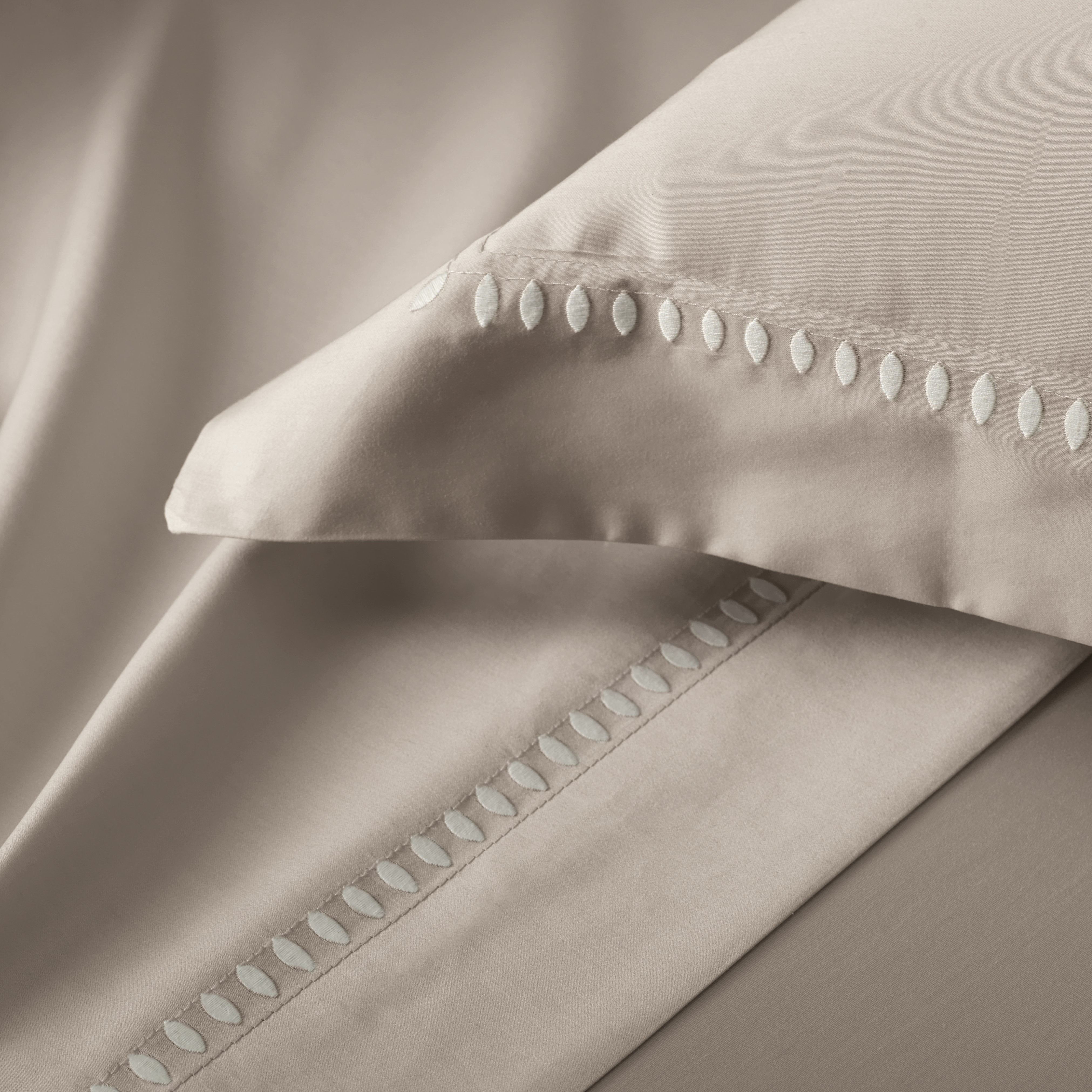Elegância que se revela nos detalhes. O jogo de cama Cerclê encanta pelo bordado delicado em padrão circular, que remete à leveza e ao movimento do artesanato contemporâneo. As fronhas ganham destaque com o contorno bordado em quatro abas de 6cm, criando um visual sofisticado e acolhedor, com fechamento envelope para um acabamento impecável.