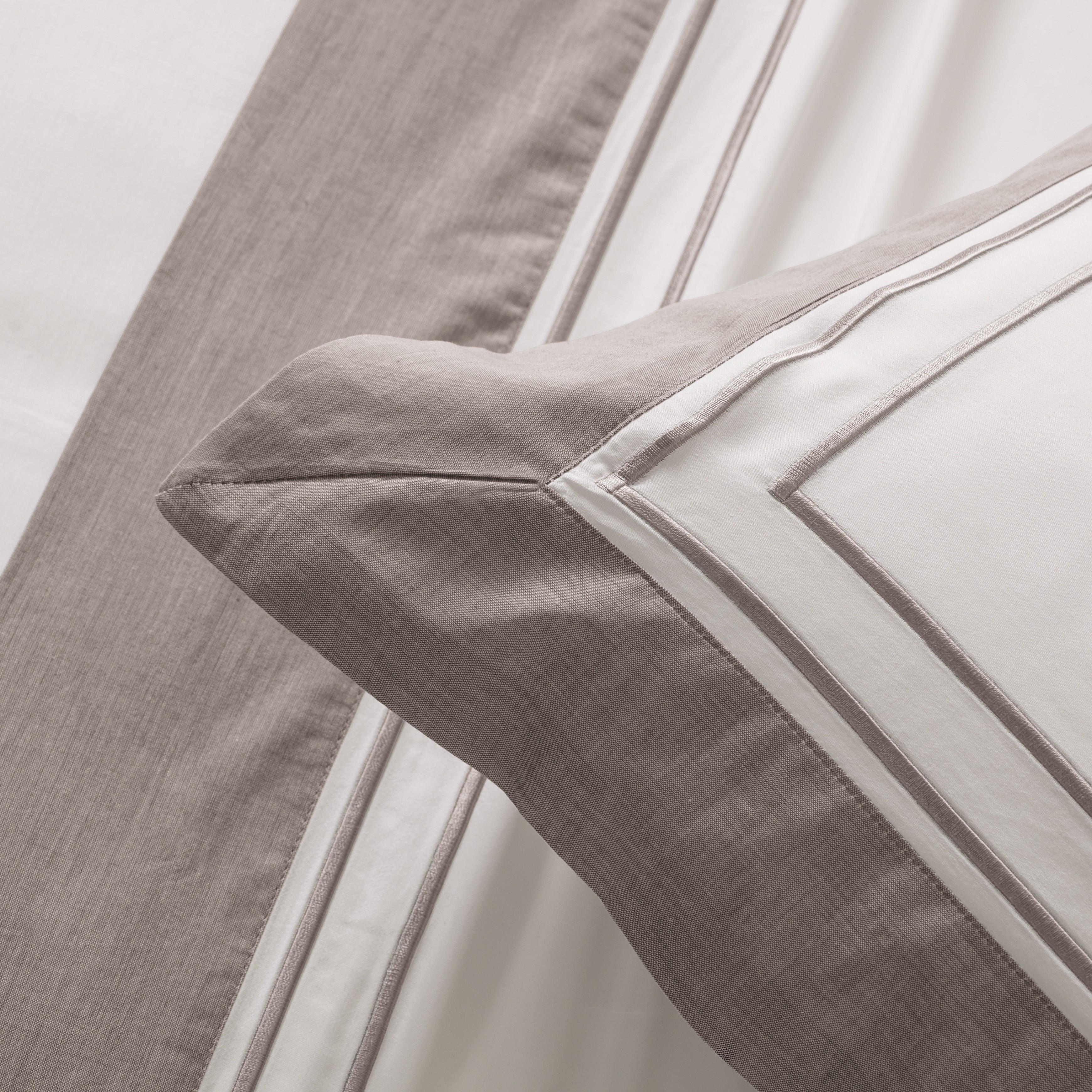 O jogo de lençol Essential em cetim 300 fios combina o toque acetinado do tecido com o design minimalista e o acabamento bordado em tom bege — um clássico atemporal que traz elegância e conforto incomparáveis ao seu quarto.