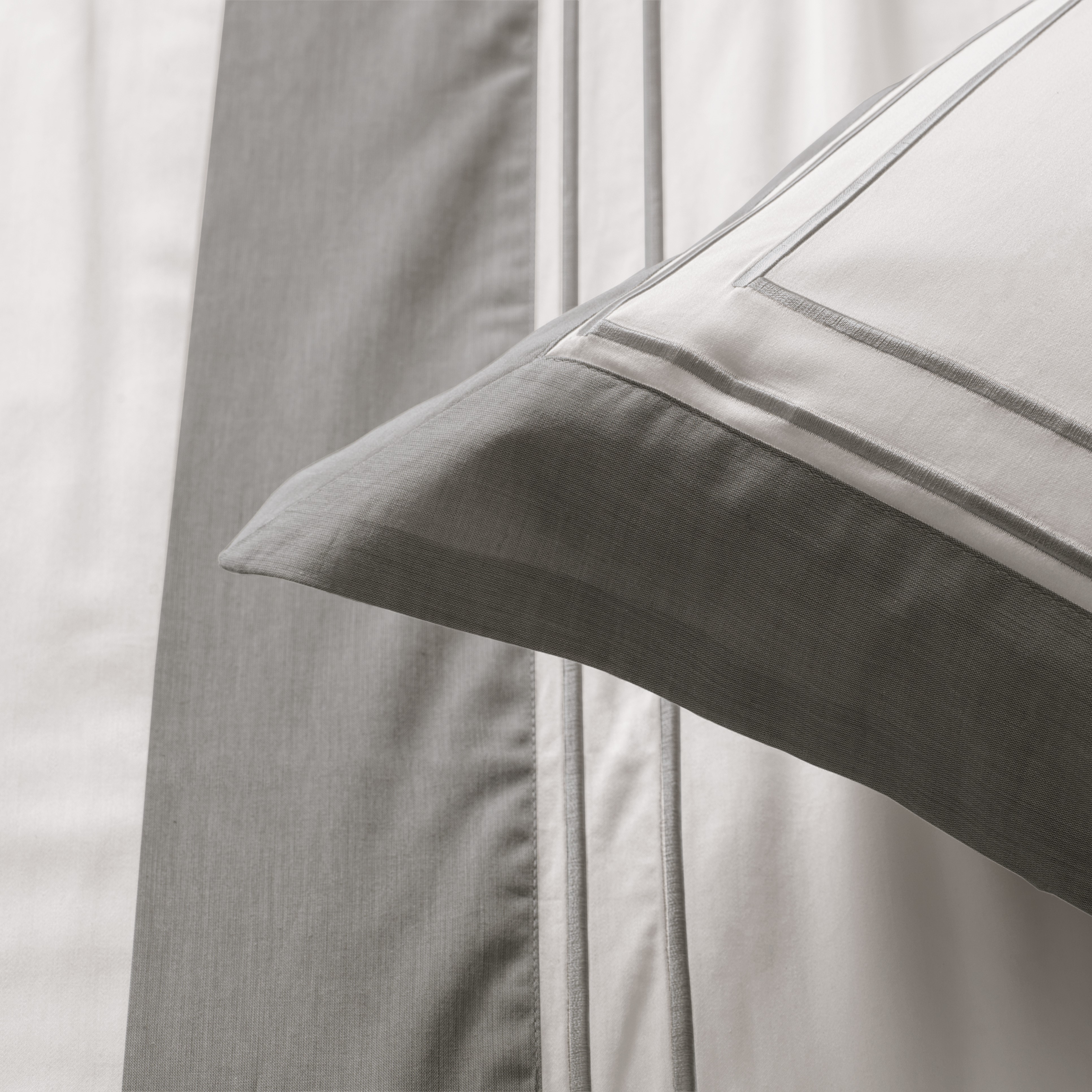 O jogo de lençol Essential em cetim 300 fios combina o toque acetinado do tecido com o design minimalista e o acabamento bordado em tom cinza — um clássico atemporal que traz elegância e conforto incomparáveis ao seu quarto.