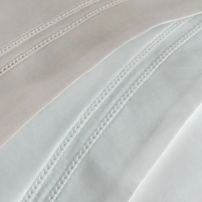 Acabamento: Tecido mercerizado; Fronha e vira com ponto ajour duplo.