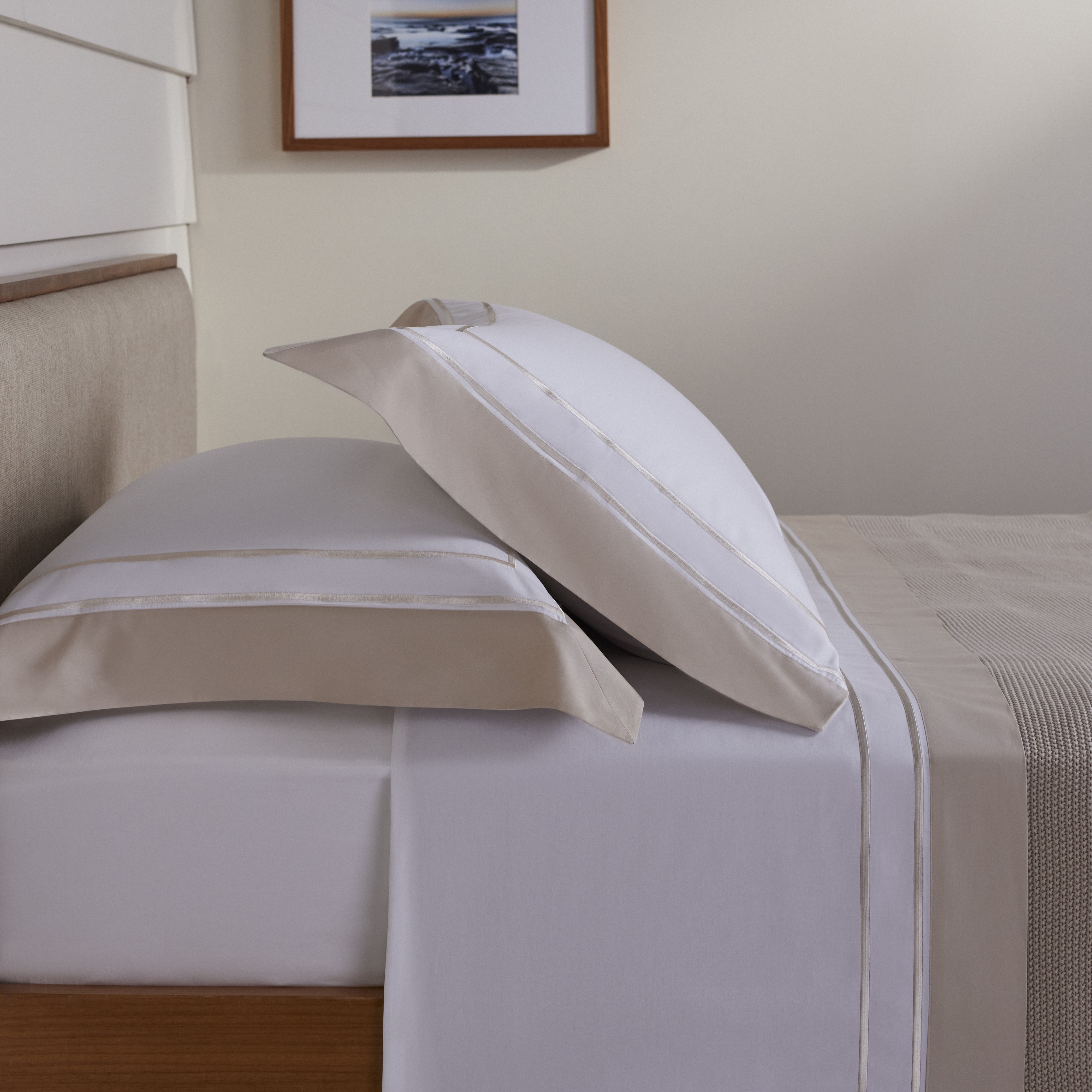 Inspirada na alfaiataria, a Coleção Sávile possui design sofisticado, tornando a decoração da cama harmoniosa e elegante. Sua moldura em tecido contrastante e duplo ponto cheio, cria toque de brilho ao fundo branco, com visual alinhado e repleto de refinamento. Em 400 fios de cetim de puro algodão, o modelo possui toque delicado com elevada maciez, trazendo conforto e muito aconchego.