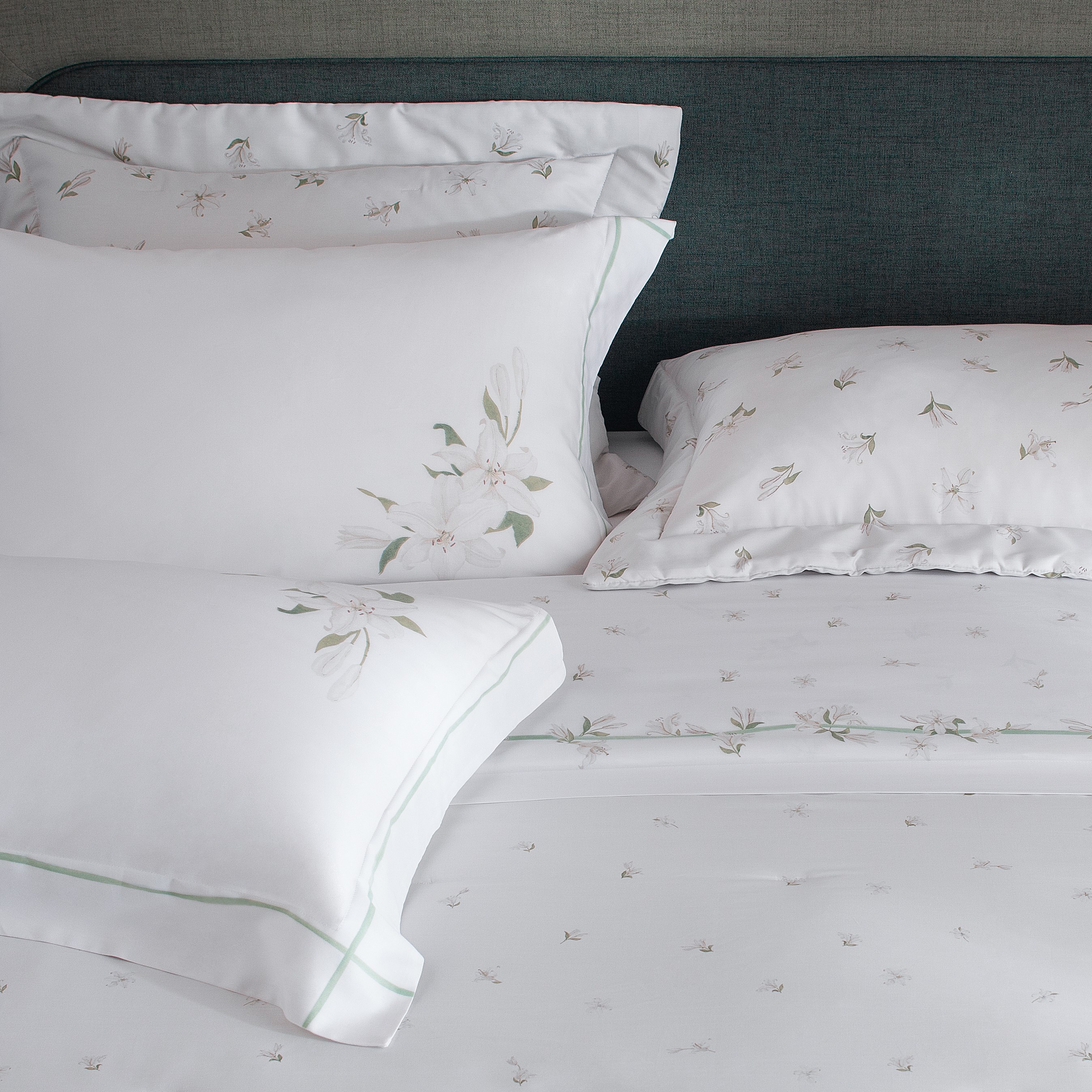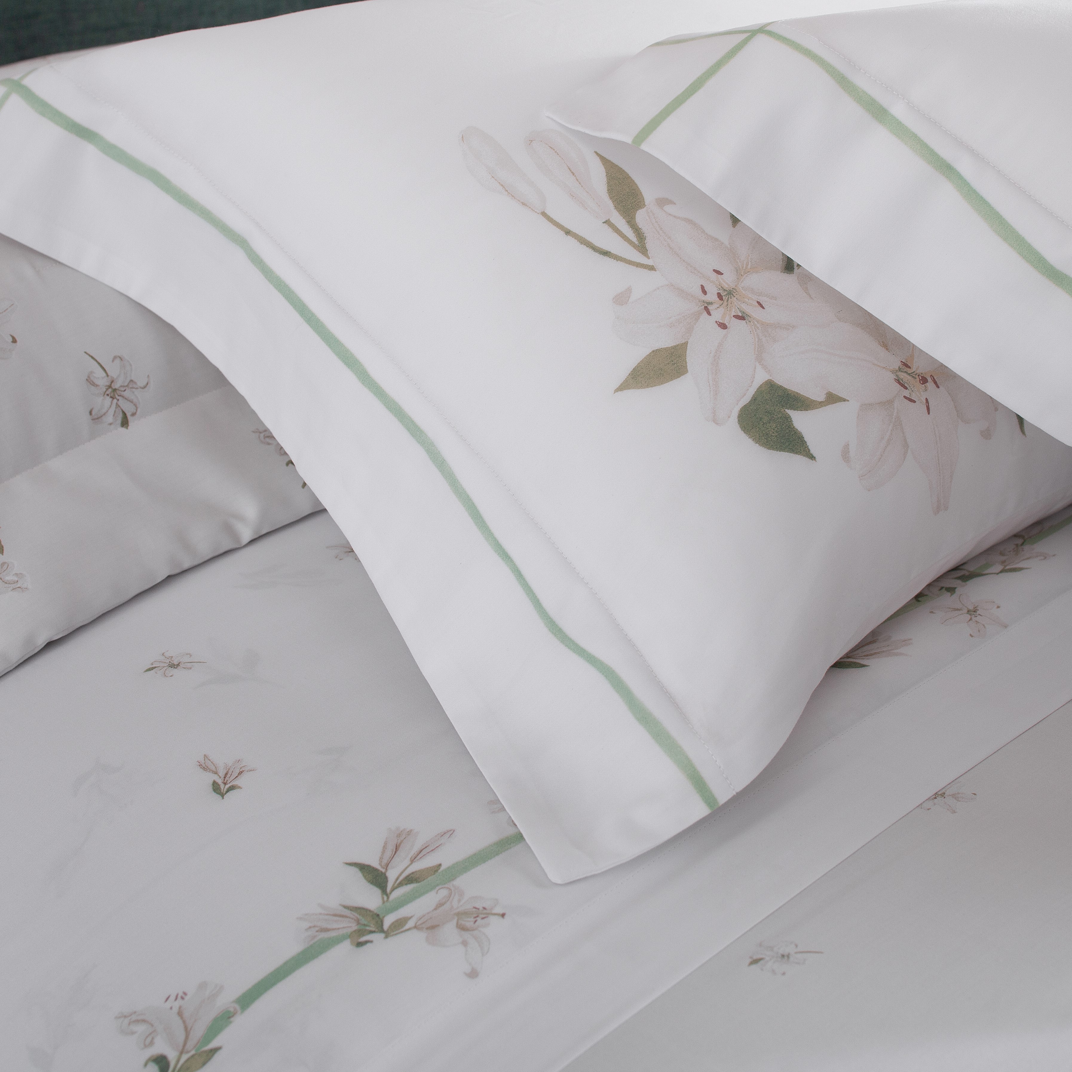 Extremamente sofisticado, em aconchegantes 300 fios de cetim de algodão, o jogo de lençol Gaya possui a leveza das melhores sensações. Símbolo de romantismo e pureza, a beleza de lírios aquarelados preenche todo o modelo com elegância ímpar. Na vira do sobrelençol e fronhas, a moldura diferenciada em tons esverdeados, enriquece o acabamento com charme e modernidade. Seu toque sedoso é incrivelmente macio e aconchegante, promovendo conforto em seu ápice. Qualidade e design Buddemeyer.