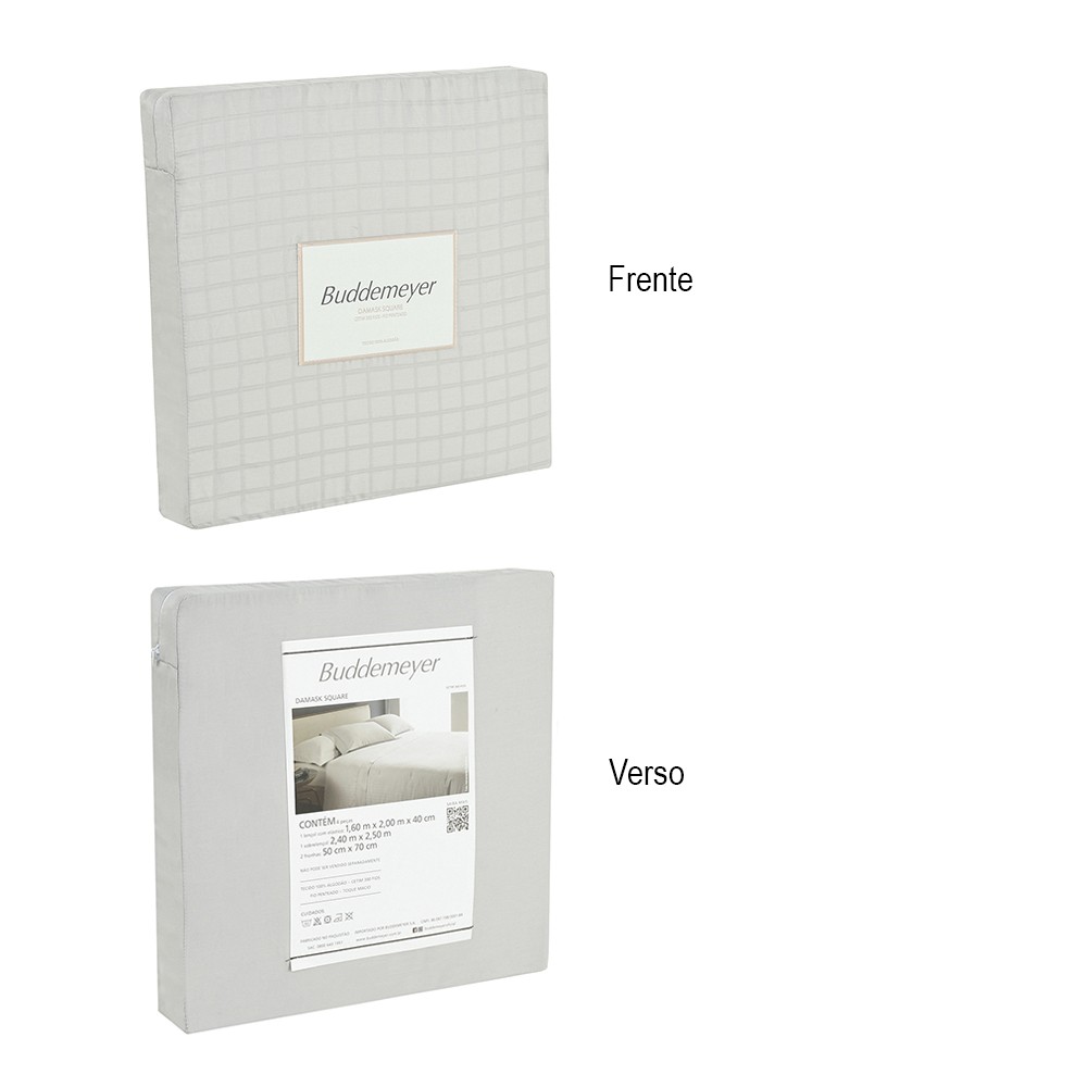 Em tecido 100% algodão fio penteado, cetim 300 fios de excelente qualidade. A linha Damask Square traz o equilíbrio perfeito entre luxo e conforto. A fina confecção permite a combinação entre um tecido adamascado e um liso, ambos em cetim 300 fios de altíssima qualidade, o que garante um visual elegante e valoriza o brilho natural das peças. Fronha 3 abas com acabamento em ponto ajour; lençol com elástico para altura de colchão até 40cm; sobrelençol com acabamento em ponto ajour. A Buddemeyer é referência em qualidade e estilo.
