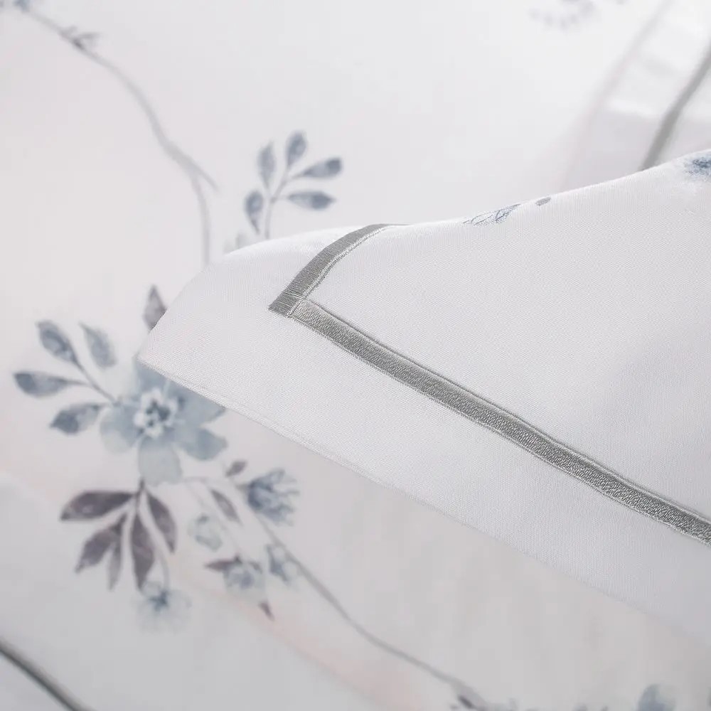 Flores de laranjeiras tornam o jogo de lençol Louise Gran Percalle repleto de vivacidade. Ramos aquarelados, estampados em nuances azuis e brancas, preenchem o jogo de cama com elegante realismo. E a moldura em ponto cheio confere acabamento sofisticado na vira do sobrelençol e fronhas. Em Gran Percalle 200 fios de puro algodão com fibras longas, o modelo possui excepcional maciez, agregando mais conforto e bem-estar para os momentos de descanso. Acompanha embalagem no mesmo tecido do lençol, para manter o jogo de cama mais organizado e sempre a mão. A Buddemeyer é referência em qualidade e estilo.