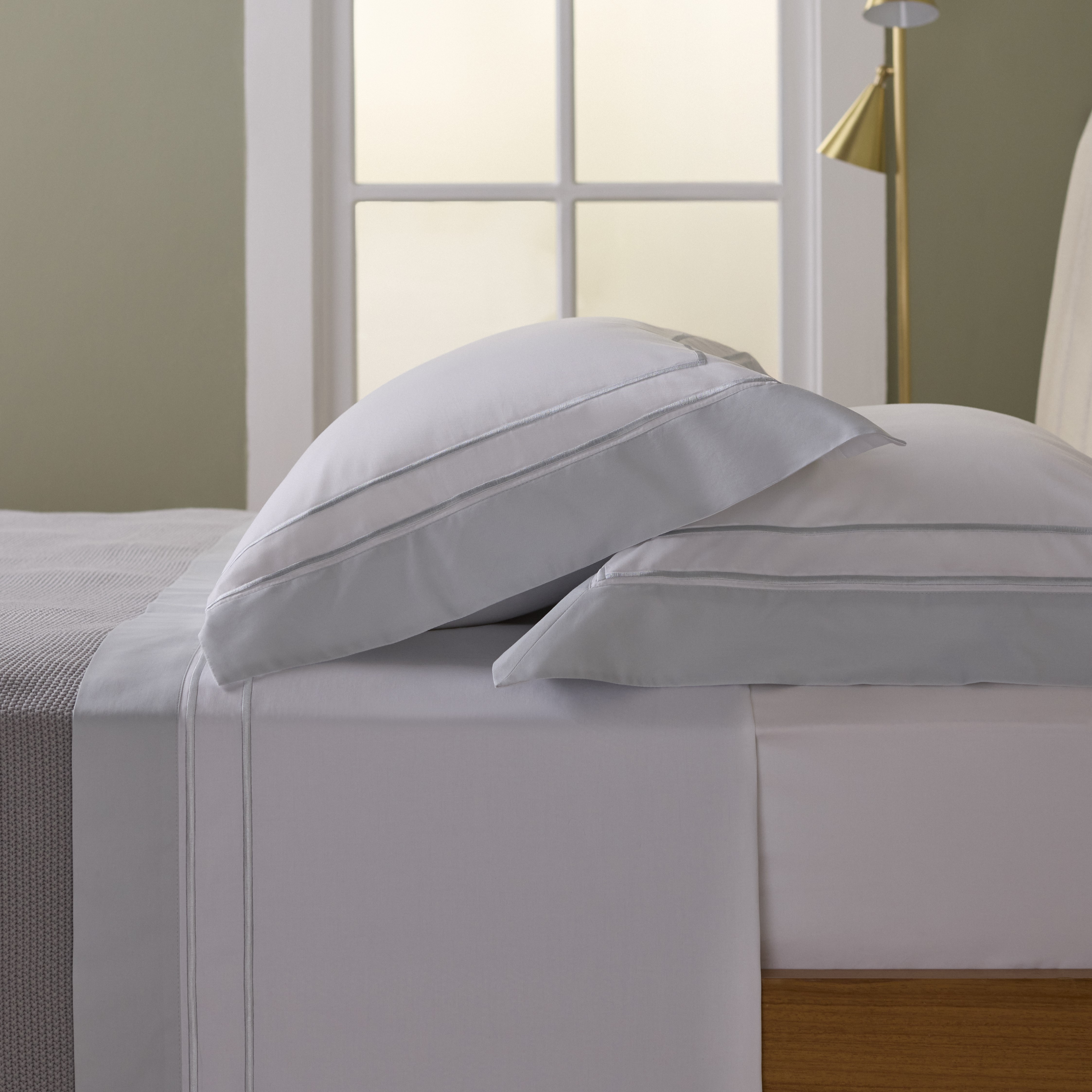 Inspirada na alfaiataria, a Coleção Sávile possui design sofisticado, tornando a decoração da cama harmoniosa e elegante. Sua moldura em tecido contrastante e duplo ponto cheio, cria toque de brilho ao fundo branco, com visual alinhado e repleto de refinamento. Em 400 fios de cetim de puro algodão, o modelo possui toque delicado com elevada maciez, trazendo conforto e muito aconchego.