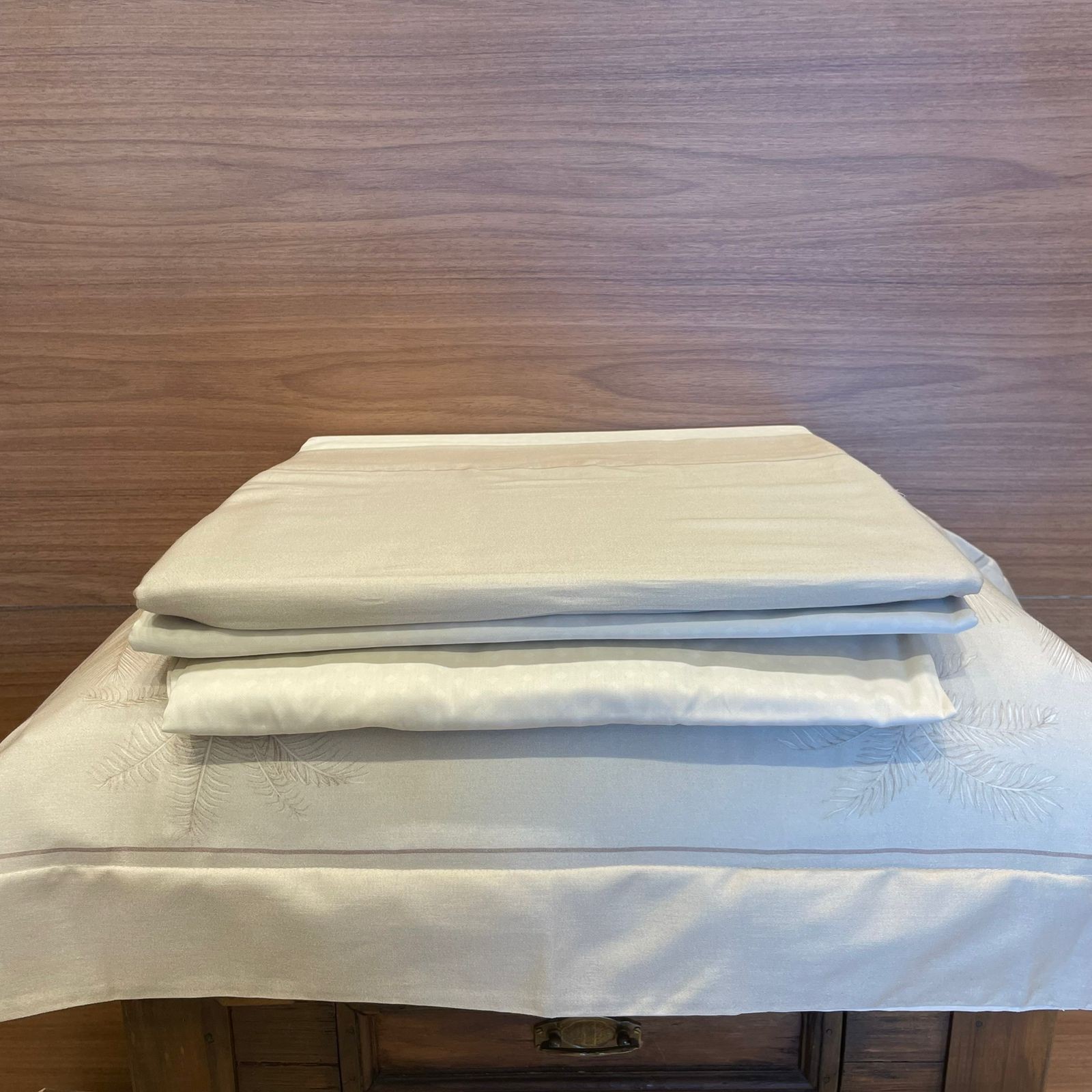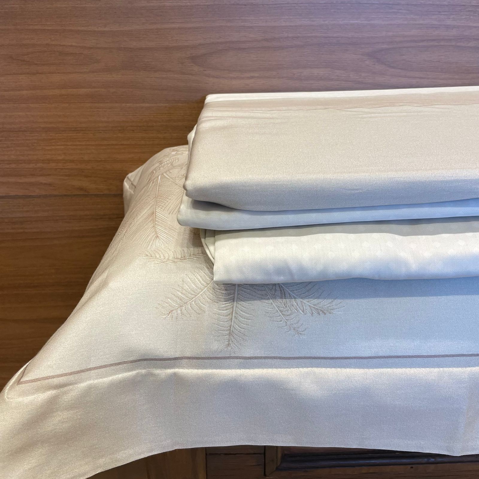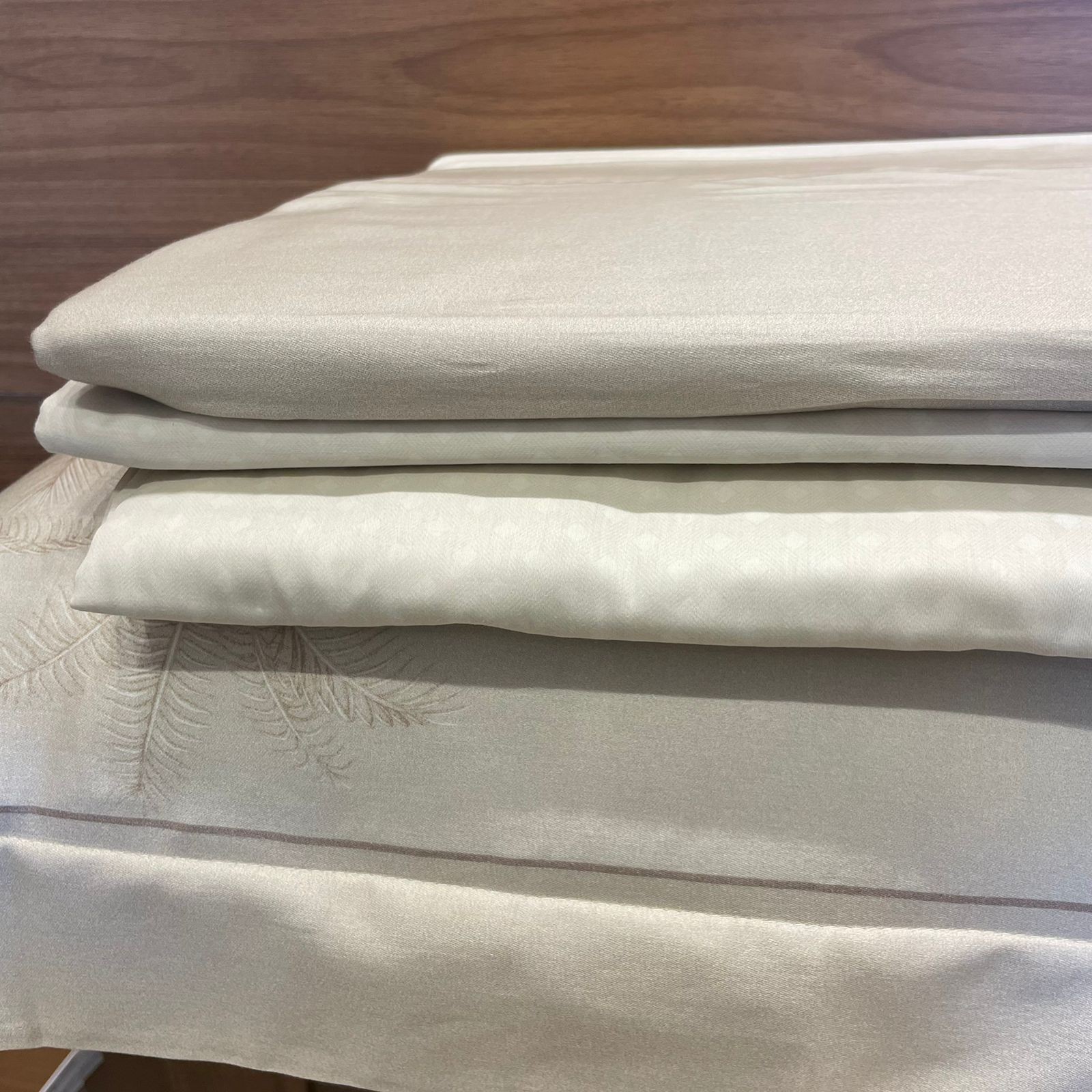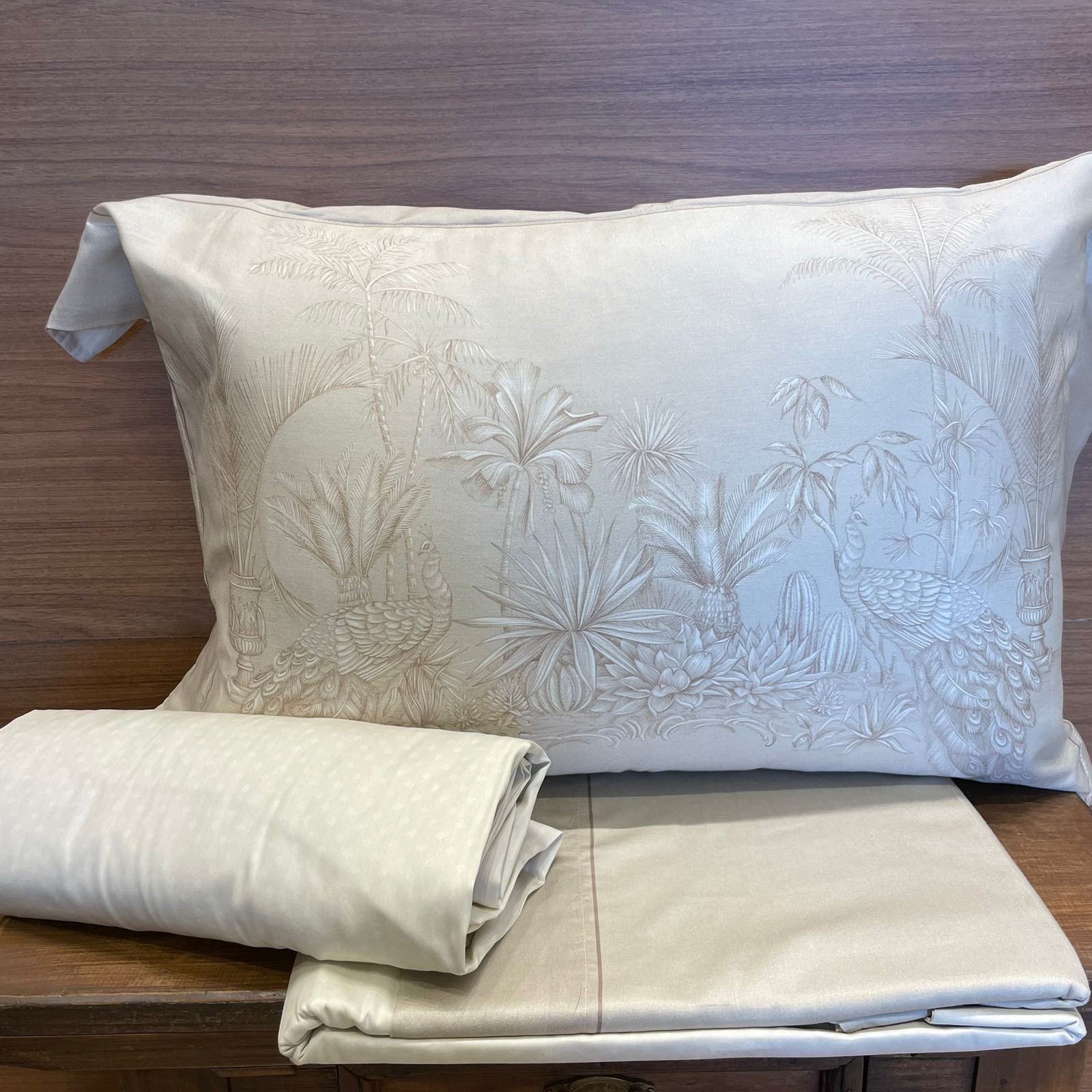 O jogo de lençol Villa Ravino, da Trussardi, inspira-se na natureza. Confeccionado em cetim 300 fios, oferece toque acetinado, macio e envolvente, que transforma o descanso em uma experiência de conforto absoluto. Sua estampa com elementos naturais e tons suaves, adiciona sofisticação e leveza à cama, criando um ambiente acolhedor, elegante e atemporal.