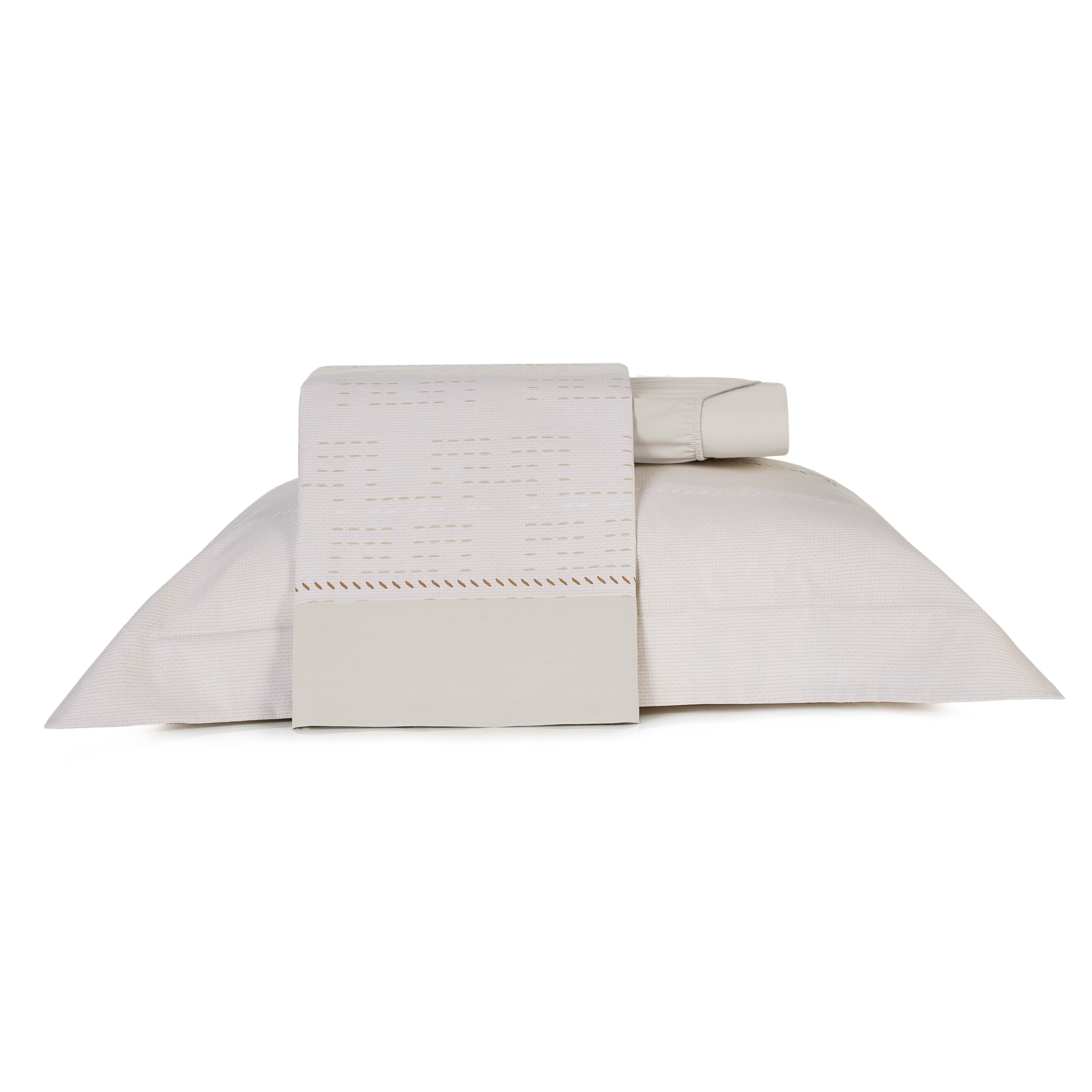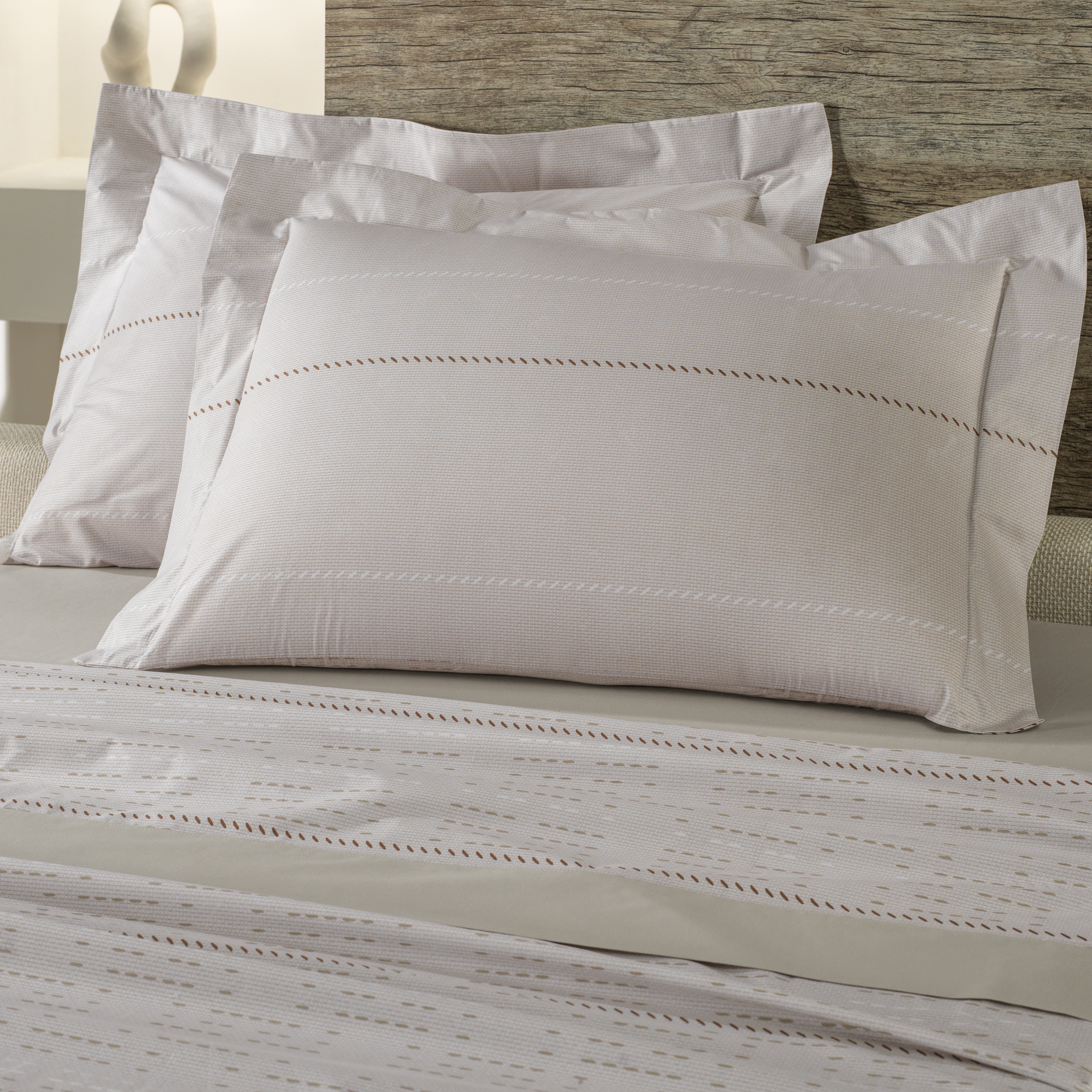 O jogo de cama Lineart é confeccionado em 100% algodão, 200 fios, oferecendo maciez, conforto e durabilidade. Seu desenho geométrico delicado adiciona charme sutil à composição, enquanto a paleta neutra traz leveza e sofisticação para qualquer ambiente. Perfeito para quem busca estilo com suavidade no dia a dia.