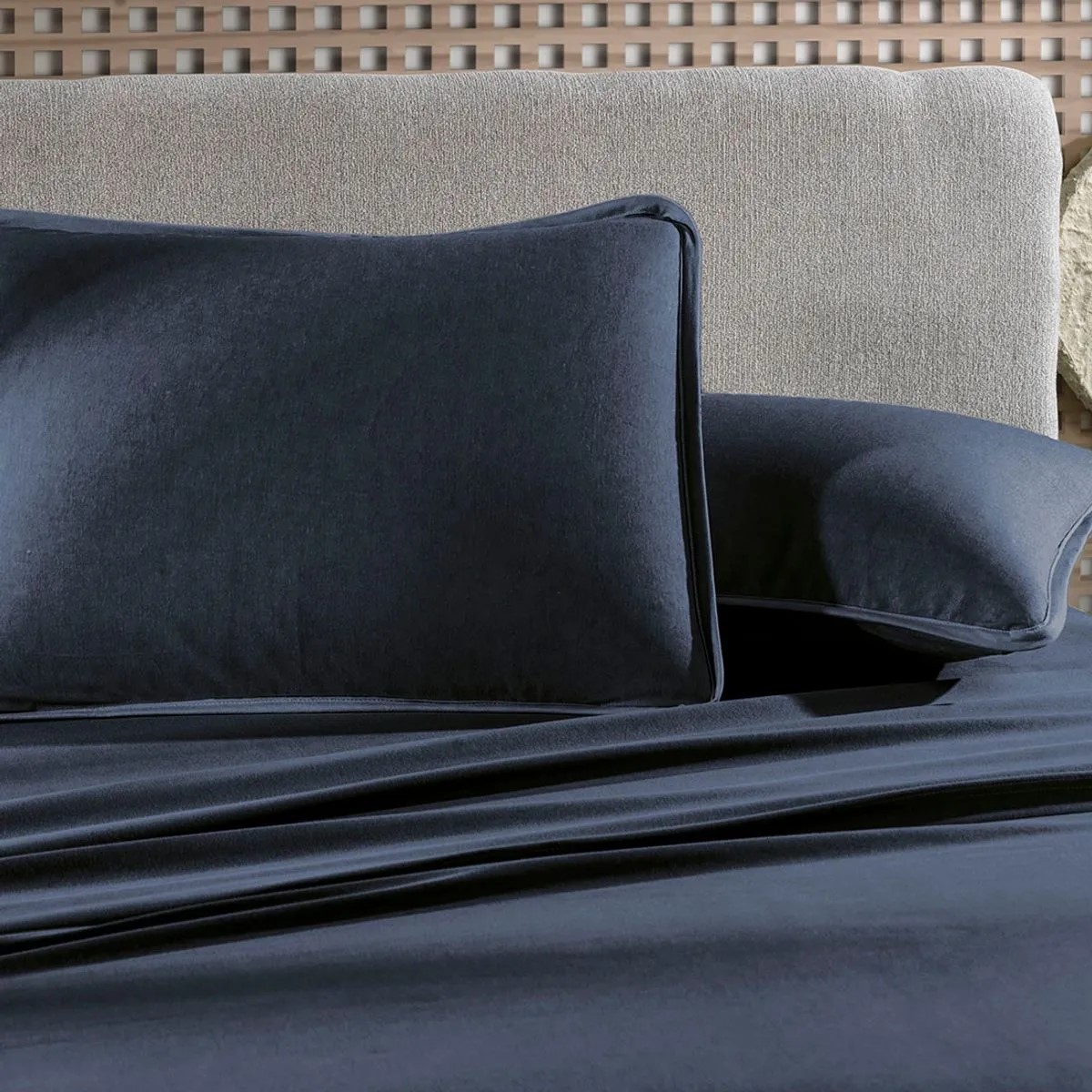 O jogo de cama em malha fio penteado traz o toque macio e aconchegante que só o algodão pode oferecer. Com visual minimalista na cor azul, ele é perfeito para compor um ambiente moderno e acolhedor, garantindo noites de descanso com muito bem-estar. O jogo de cama inclui lençol superior com dobra feita, lençol inferior com elástico que se ajusta a colchões de até 28cm de altura e fronha envelope com acabamento em rolotê, garantindo charme e praticidade.