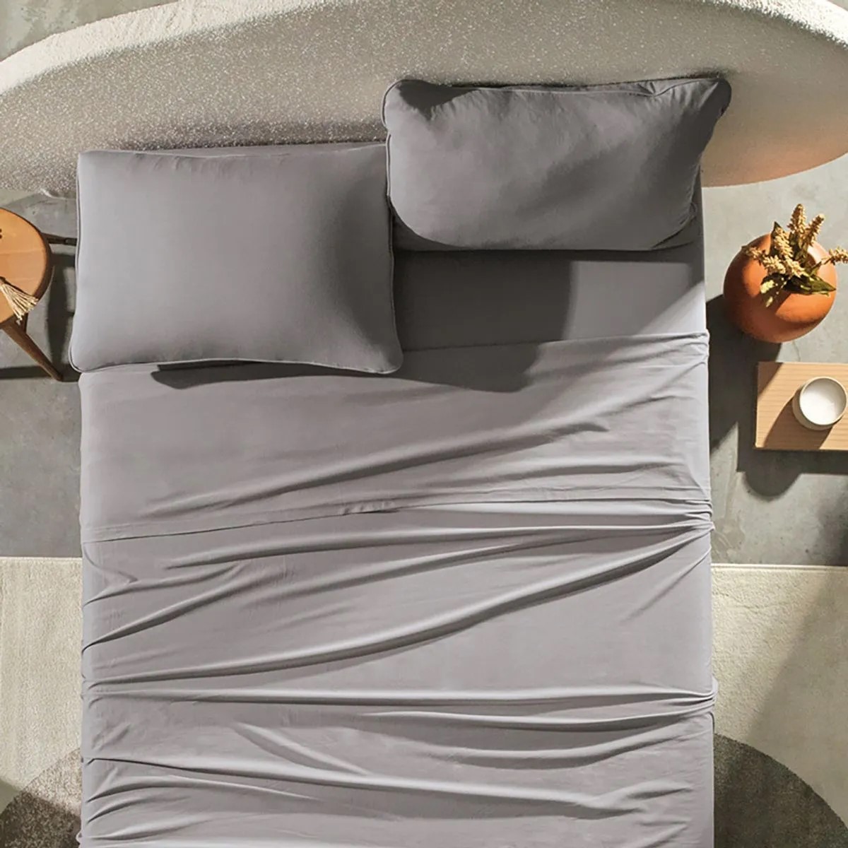 Conforto e elegância em cada detalhe. O jogo de cama em malha fio penteado proporciona toque macio e sensação de aconchego, ideal para noites tranquilas. Na cor cinza platinum, traz um visual moderno e sofisticado que combina facilmente com diferentes estilos de decoração. O jogo de cama inclui lençol superior com dobra feita, lençol inferior com elástico que se ajusta a colchões de até 28cm de altura e fronha envelope com acabamento em rolotê, garantindo charme e praticidade.