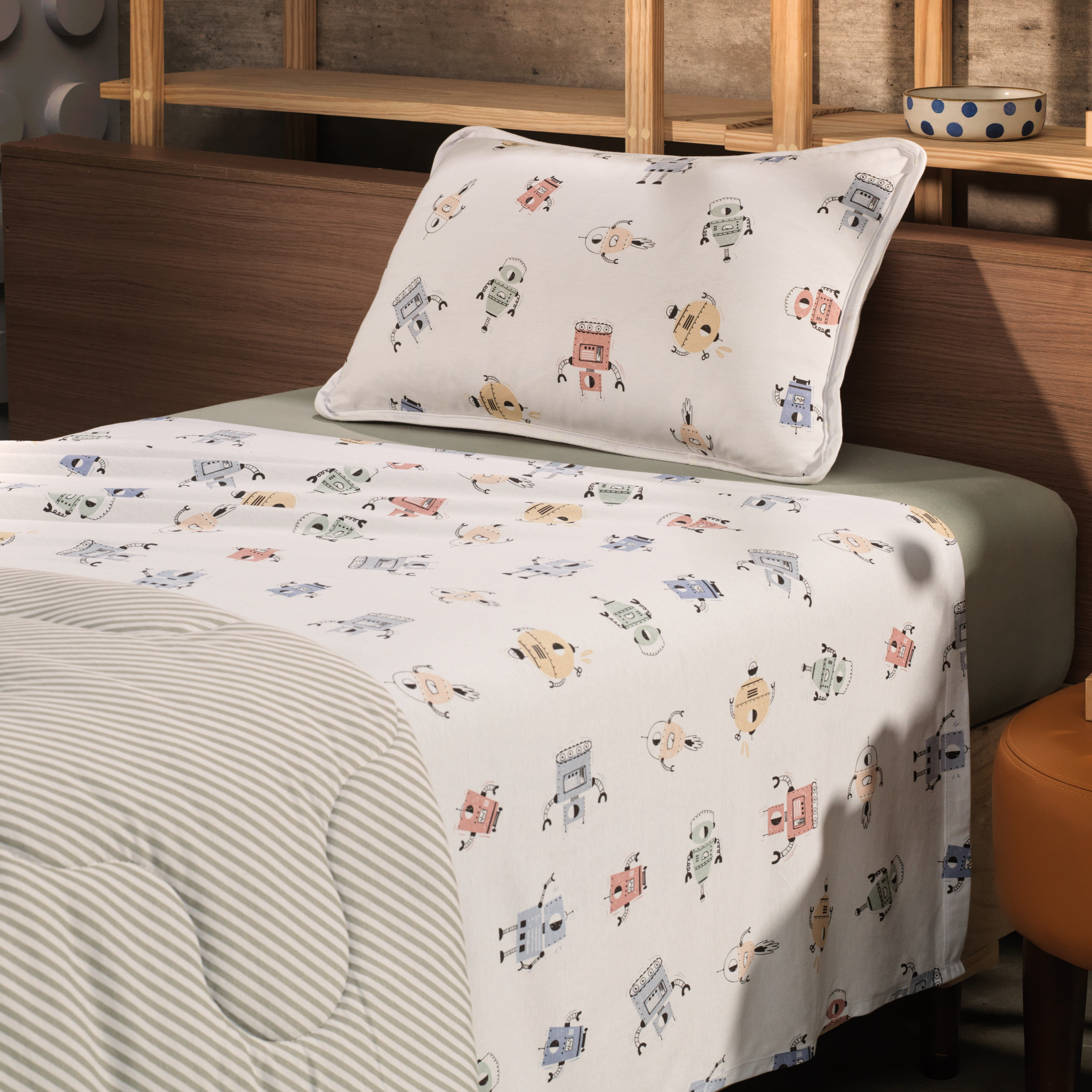 A estampa Cyberfofos leva os pequenos para uma aventura no mundo dos robôs mais fofos e divertidos! Com ilustrações coloridas e cheias de personalidade, ela transforma o quarto infantil em um cenário futurista, estimulando a imaginação e trazendo alegria para a rotina. Além de supermacio e aconchegante, garante conforto para noites tranquilas e cheias de sonhos criativos.