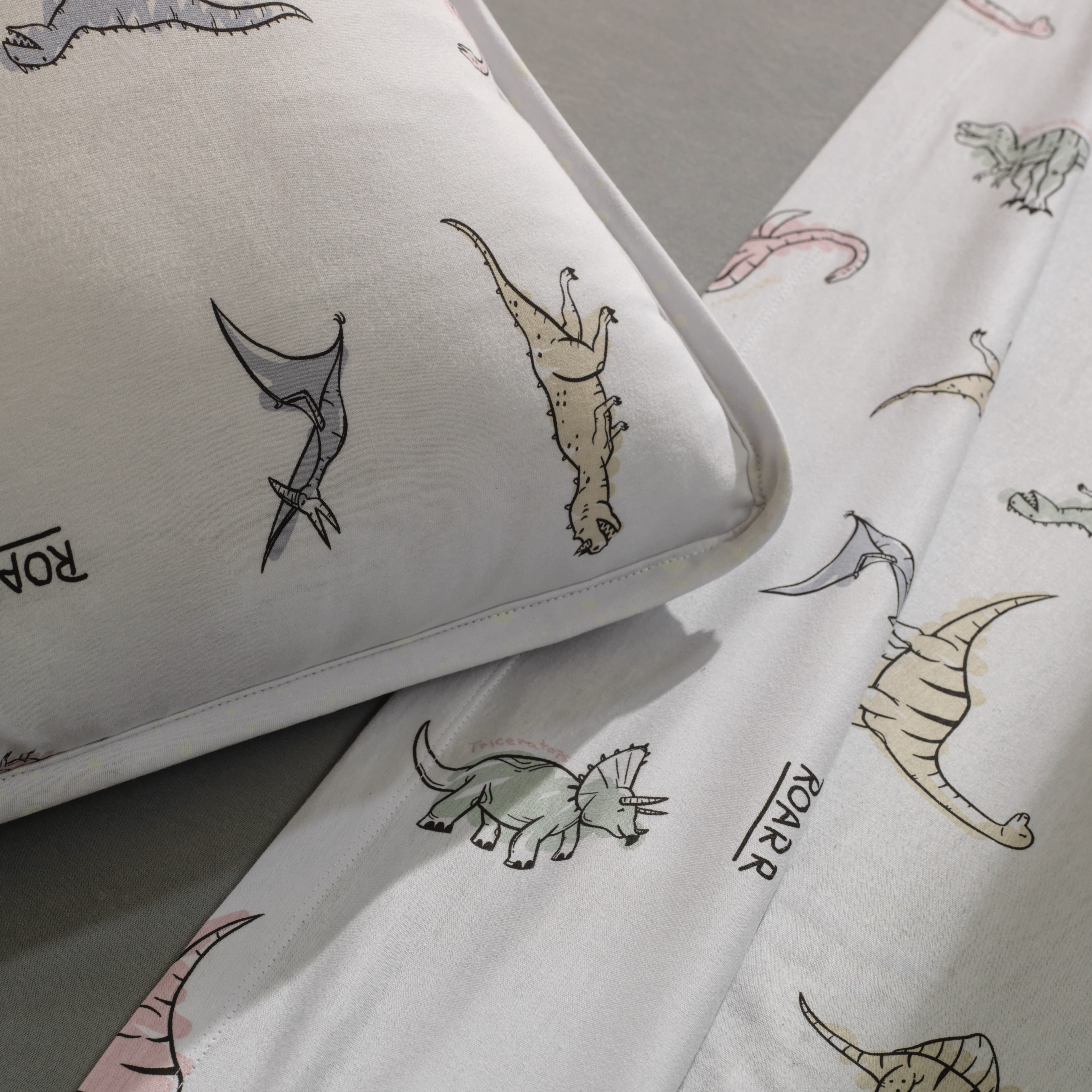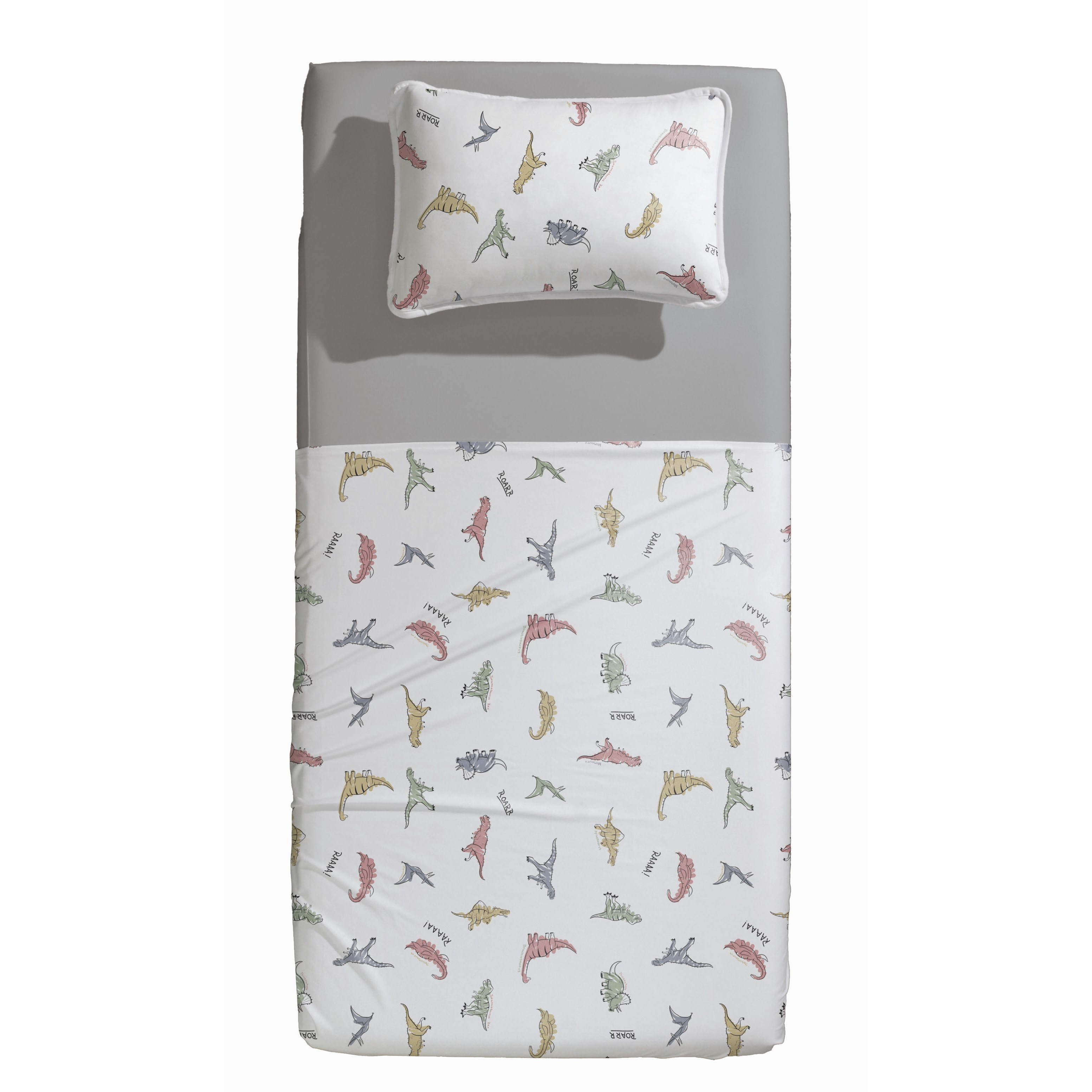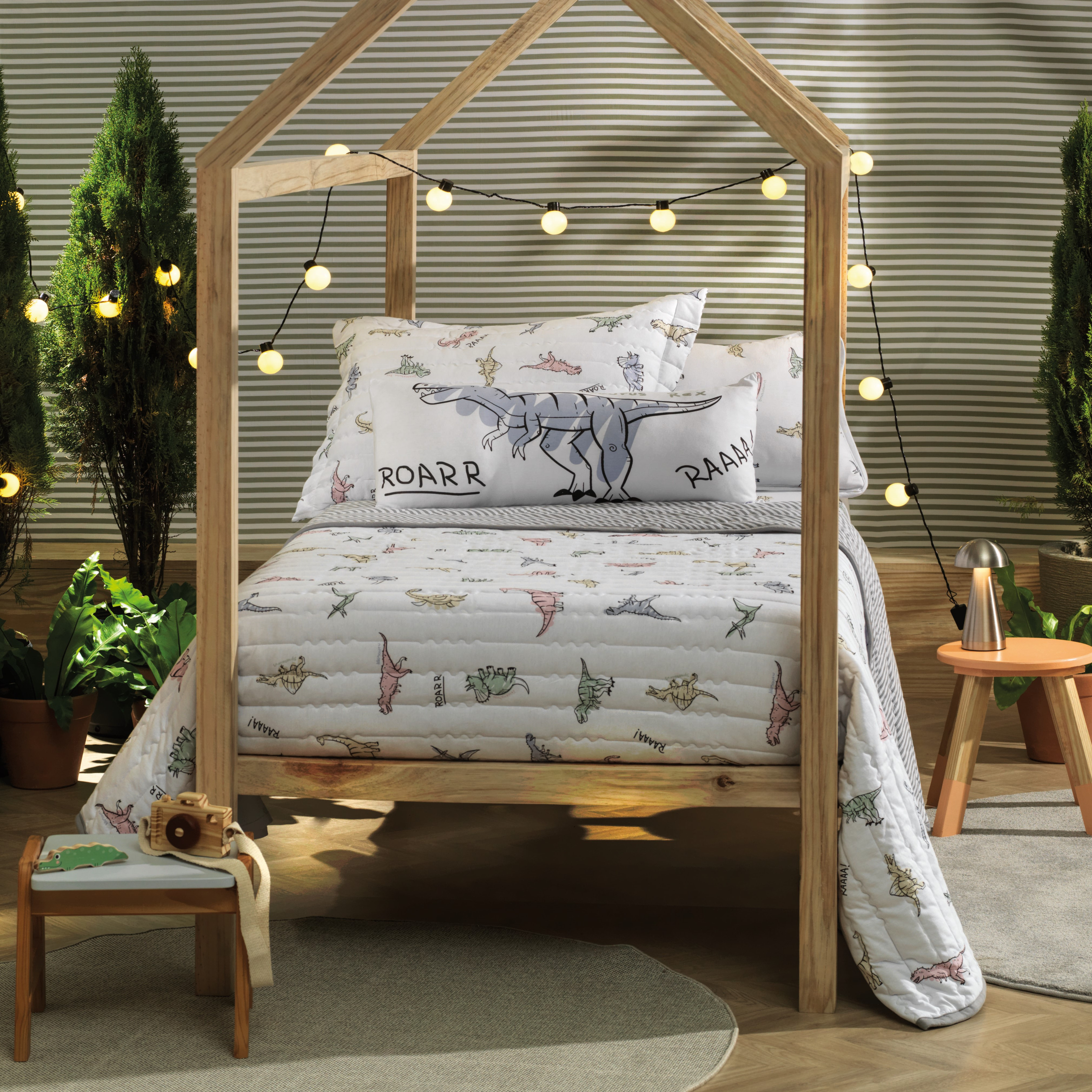 Com a estampa Rugidino, a hora de dormir ganha um toque pré-histórico cheio de diversão! Dinossauros coloridos passeiam pelo tecido macio, trazendo alegria e imaginação para o quarto infantil. Além de superconfortável, esse conjunto transforma o momento de descanso em uma verdadeira aventura jurássica, onde os pequenos podem sonhar e explorar um mundo cheio de descobertas ao lado de seus dinossauros favoritos.