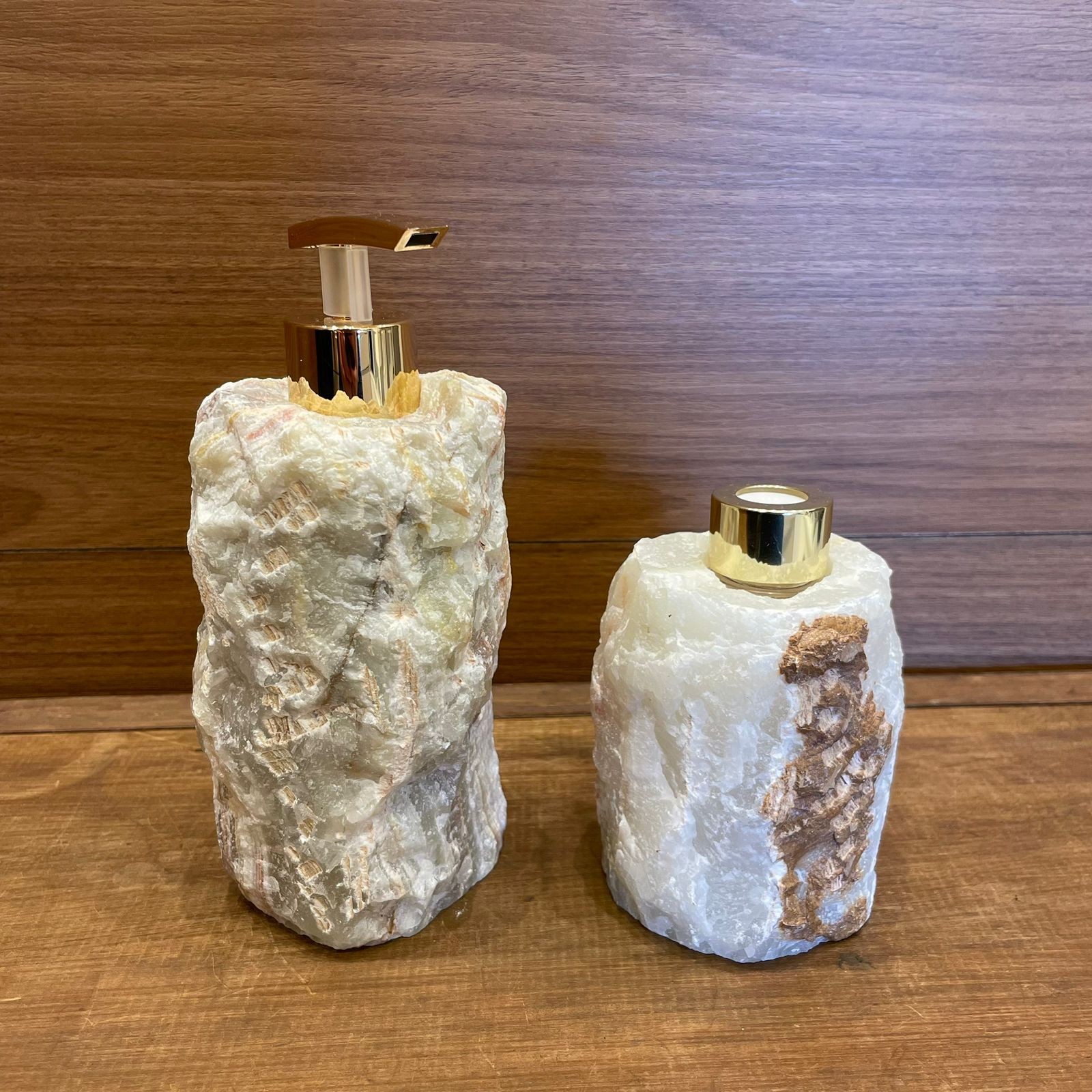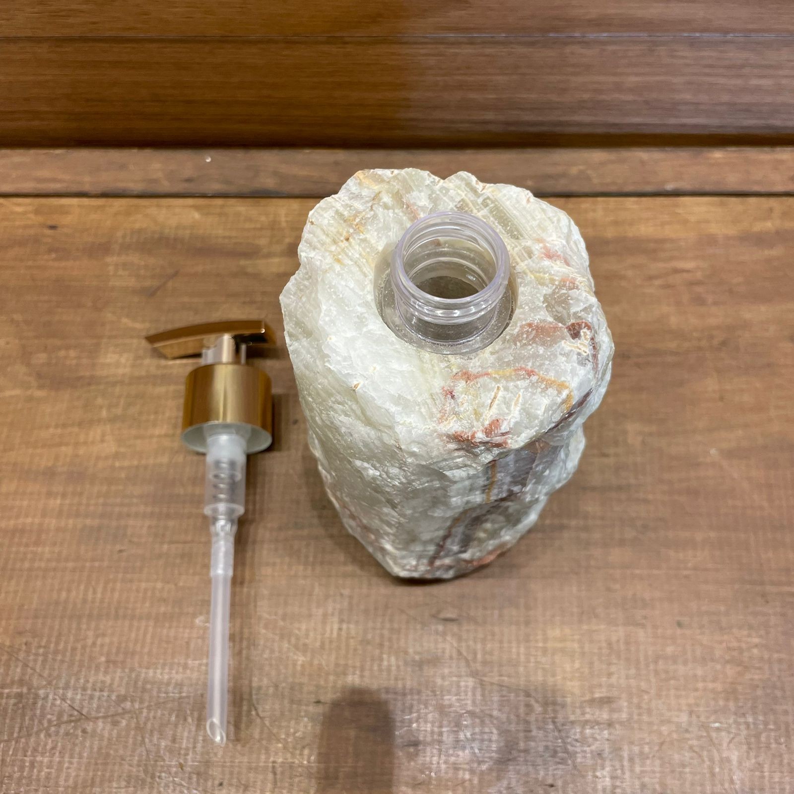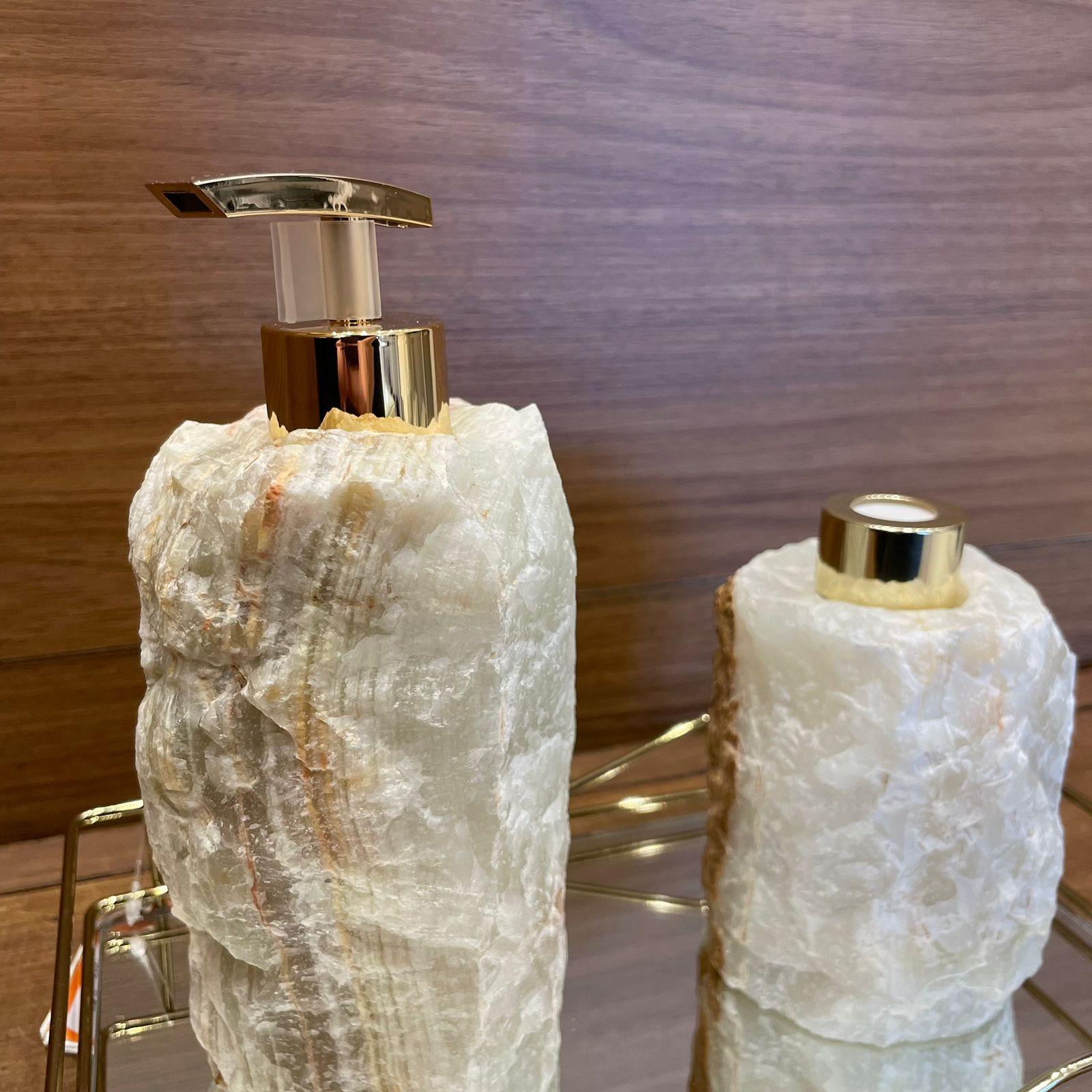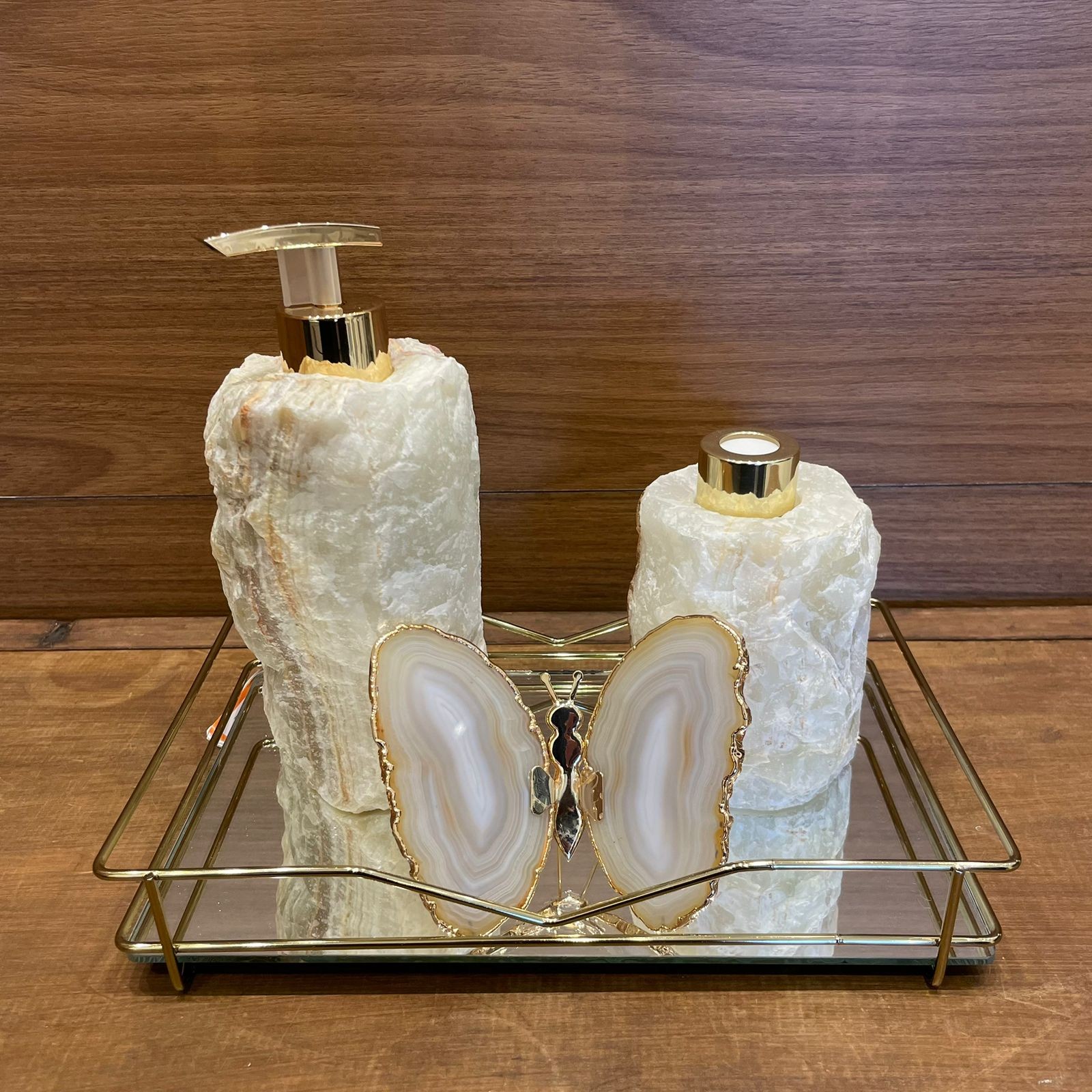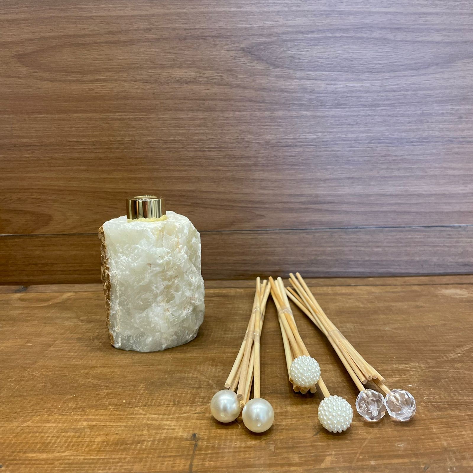 Conteúdo da embalagem: 1 Kit difusor e saboneteira bruta de onix + 1 conjunto de varetas