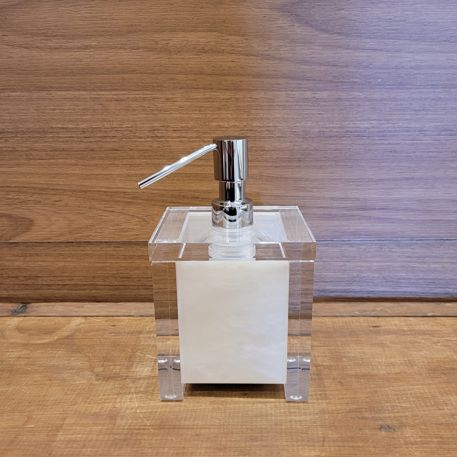 Com design sofisticado e funcional, a saboneteira pérola é produzida em acrílico transparente, com dispenser em metal cromado.