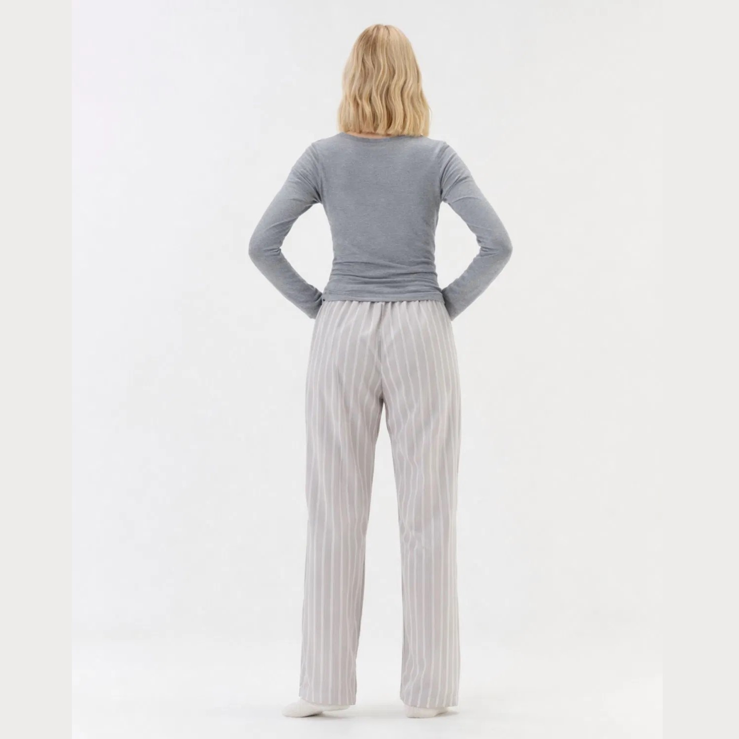 O detalhe em peitilho funcional adiciona um toque moderno e delicado à peça, tornando-a perfeita para compor produções casuais ou combinar com pijamas e looks de homewear.