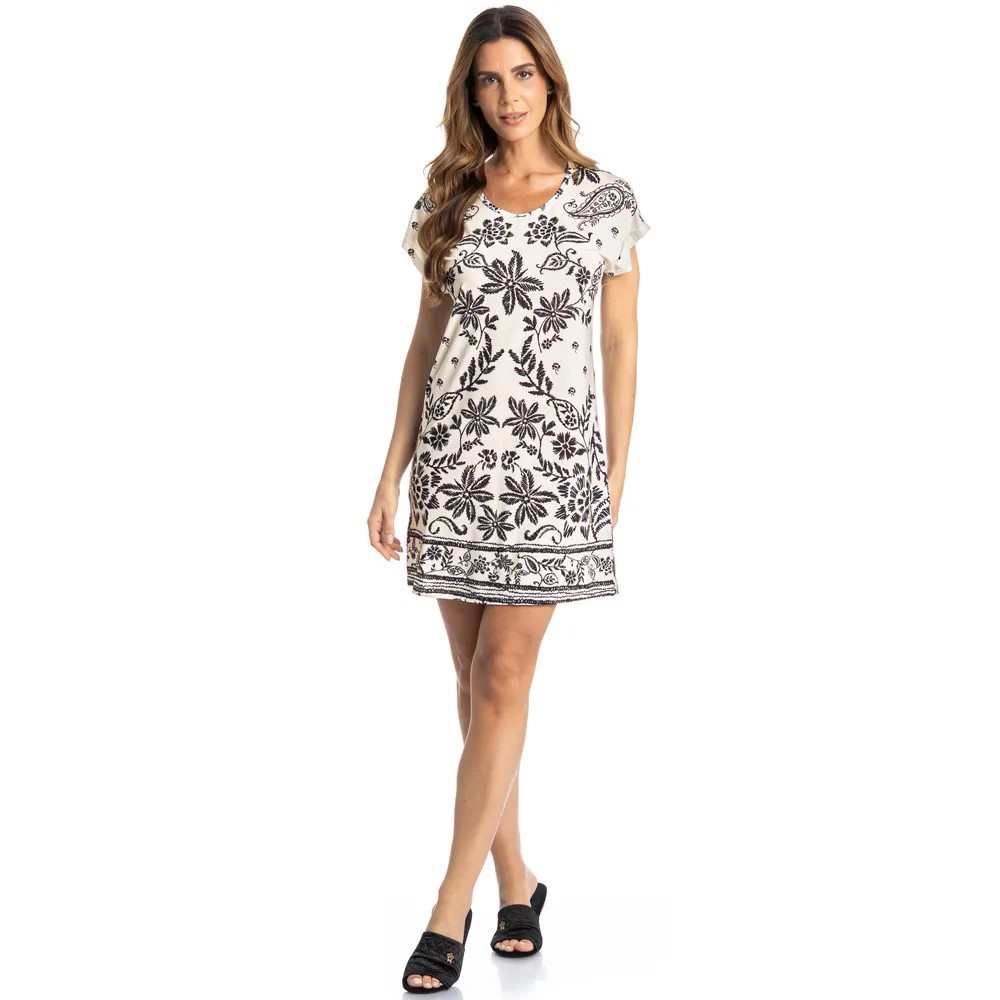Camisão curto Thaís é puro conforto para suas noites! Em modelagem ampla o camisão Thaís possui decote redondo com acabamento em viés, detalhe para sua linda e exclusiva estampa Daniela Tombini. A escolha perfeita para você desfrutar o melhor da estação!
