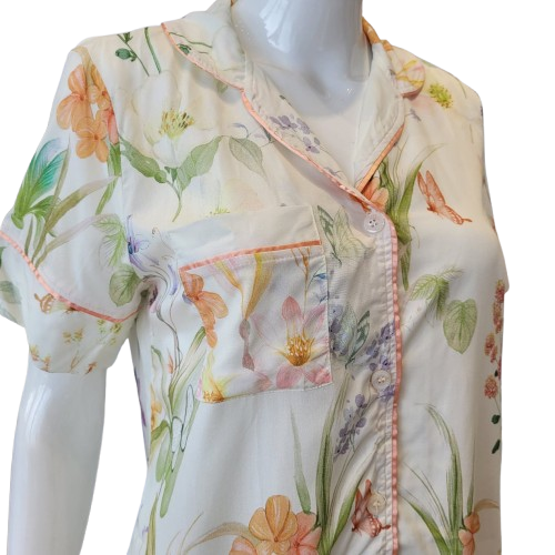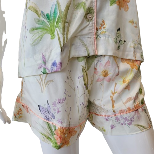Leve, fresco e delicadamente feminino, o pijama curto Fiorini traz um charme natural com sua estampa floral suave. Confeccionado em tecido leve e macio de viscose, oferece conforto absoluto para as noites de descanso ou momentos de relaxar em casa. O design com camisa abotoada e shorts de caimento solto garante praticidade e um toque de sofisticação ao seu dia a dia.