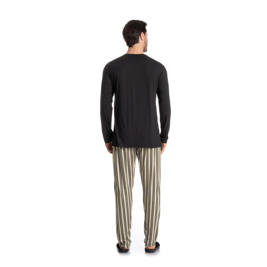 Conforto e flexibilidade para suas noites e momentos de descanso. Este pijama combina blusa em 96% viscose e 4% elastano, proporcionando toque macio, leveza e caimento suave ao corpo, com calça em 96% poliéster e 4% elastano, que garante liberdade de movimento. Um conjunto equilibrado entre conforto e praticidade, ideal para quem valoriza bem-estar sem abrir mão de estilo.
