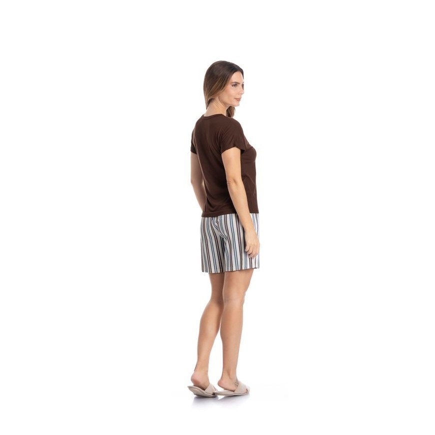 Pijama shortão Lia é puro conforto! Sua blusa é lisa com manga curta, possui decote redondo e bolso com um delicado bordado na lateral esquerda da peça. Seu short com uma sofisticada estampa de listras, possui modelagem ampla com elástico macio garantindo muito conforto em seus momentos de descanso. Perfeito para te deixar ainda mais elegante e estilosa em suas noites!