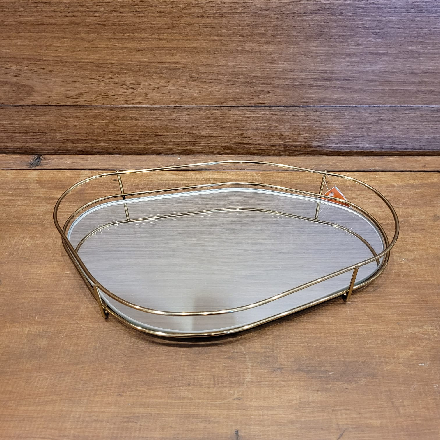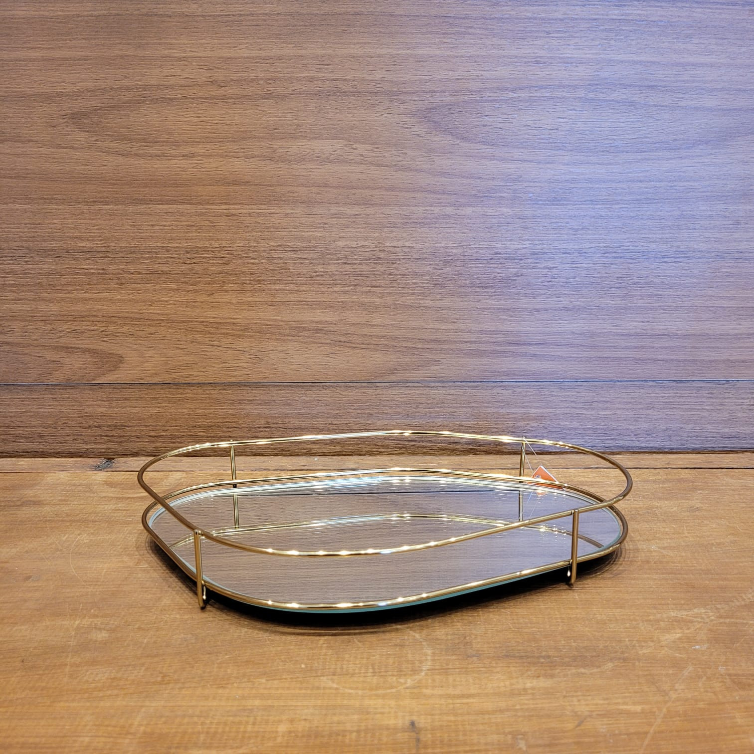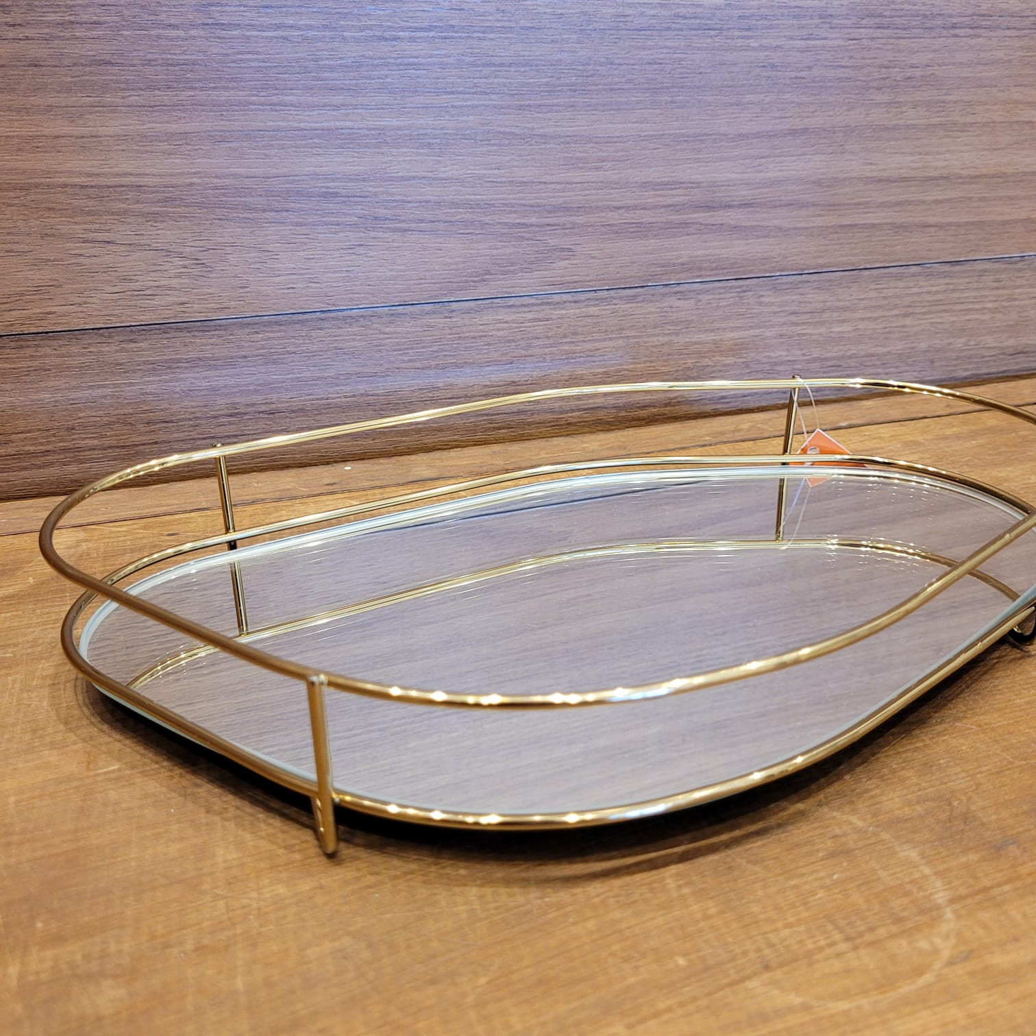 Bandeja fence orgânica dourada 17x29 – um toque de elegância e sofisticação para seu ambiente. Com estrutura metálica dourada e base espelhada, é perfeita para decorar lavabos ou mesas com charme e modernidade.