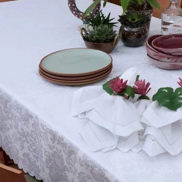 Conteúdo da Embalagem: 1 Toalha de mesa 2,20m x 0cm Arabesco branca